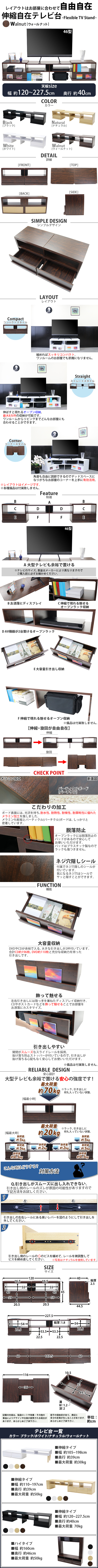 | 商品名 | 送料無料 テレビ台 伸縮 角度自由 幅約120〜227.5cm 耐荷重約70kg ウォールナット テレビラック テレビボード ローボード 伸縮テレビ台 TV台 TVボード TVラック コーナー AV収納 収納 棚 スライド ロータイプ ワンルーム リビング お洒落 引き出し シンプル tvstands25wa |