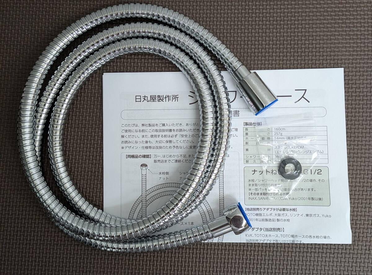 日丸屋製作所 シャワーホース ステンレス しなやか 柔軟 軽量 取付簡単 360°回転 ねじれない 高水圧 1.6m 2m (1.6m/160cm)