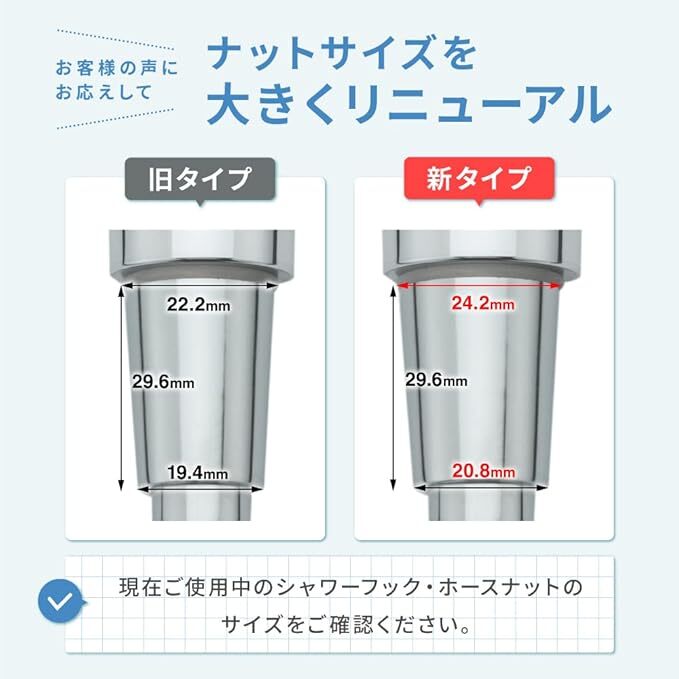 • 現在使用中のシャワーホース外径が本品よりも太い場合、水圧が弱くなる可能性があります。