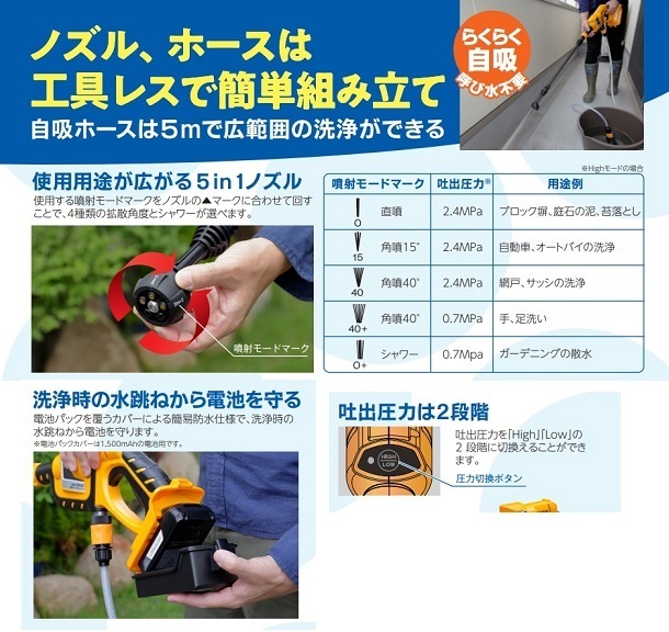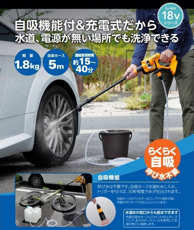 京セラ(旧リョ-ビ)製の18V充電式ポ-タブルウオッシャ-(洗浄機)のBPW-1800L1です。