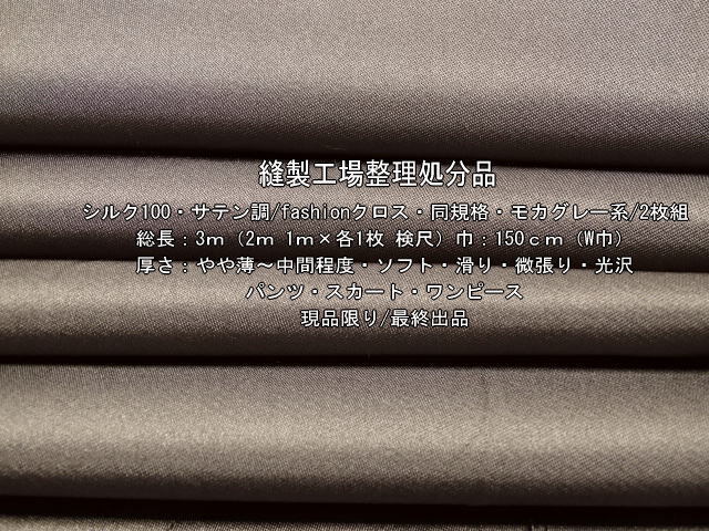 | シルク100 サテン調/fashionクロス モカグレー系/2枚組 3m W巾 | |