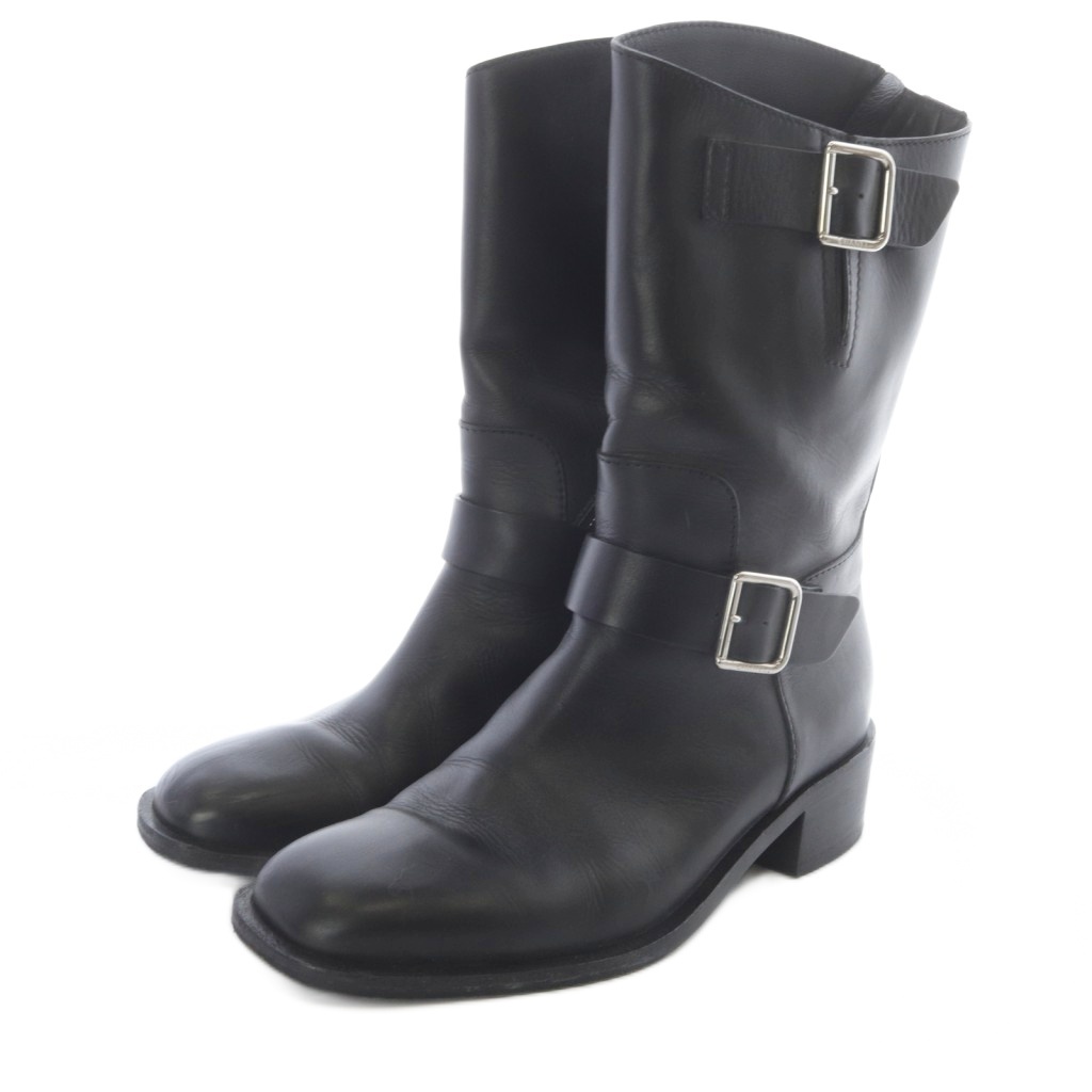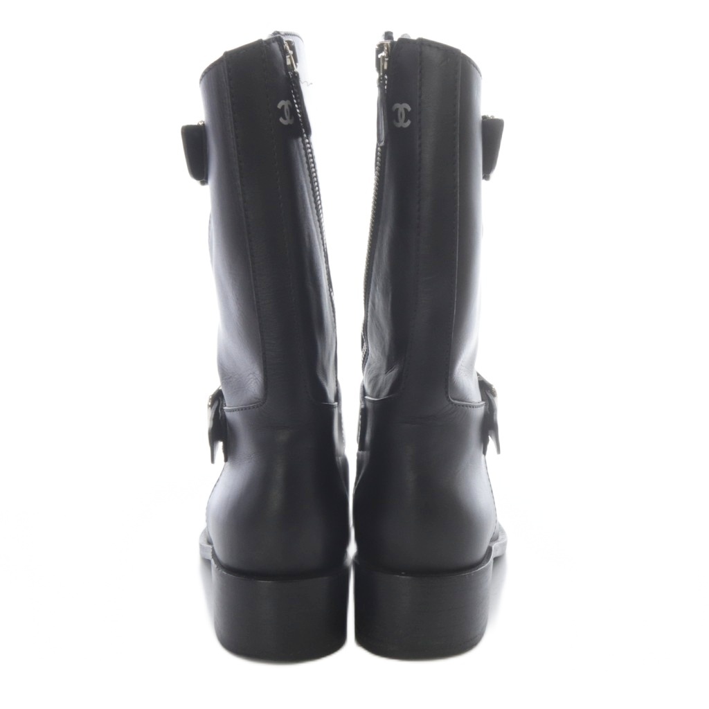 シャネル CHANEL ココマーク サイドジップ エンジニアブーツ 38 黒 ブラック G27805 /SR ■SH レディース