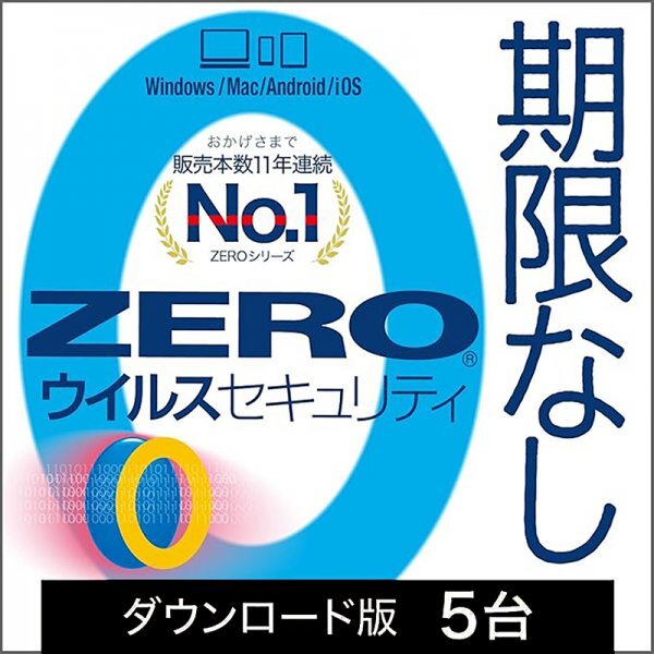 ZERO ウイルスセキュリティ5台用 期限なし ダウンロード版
