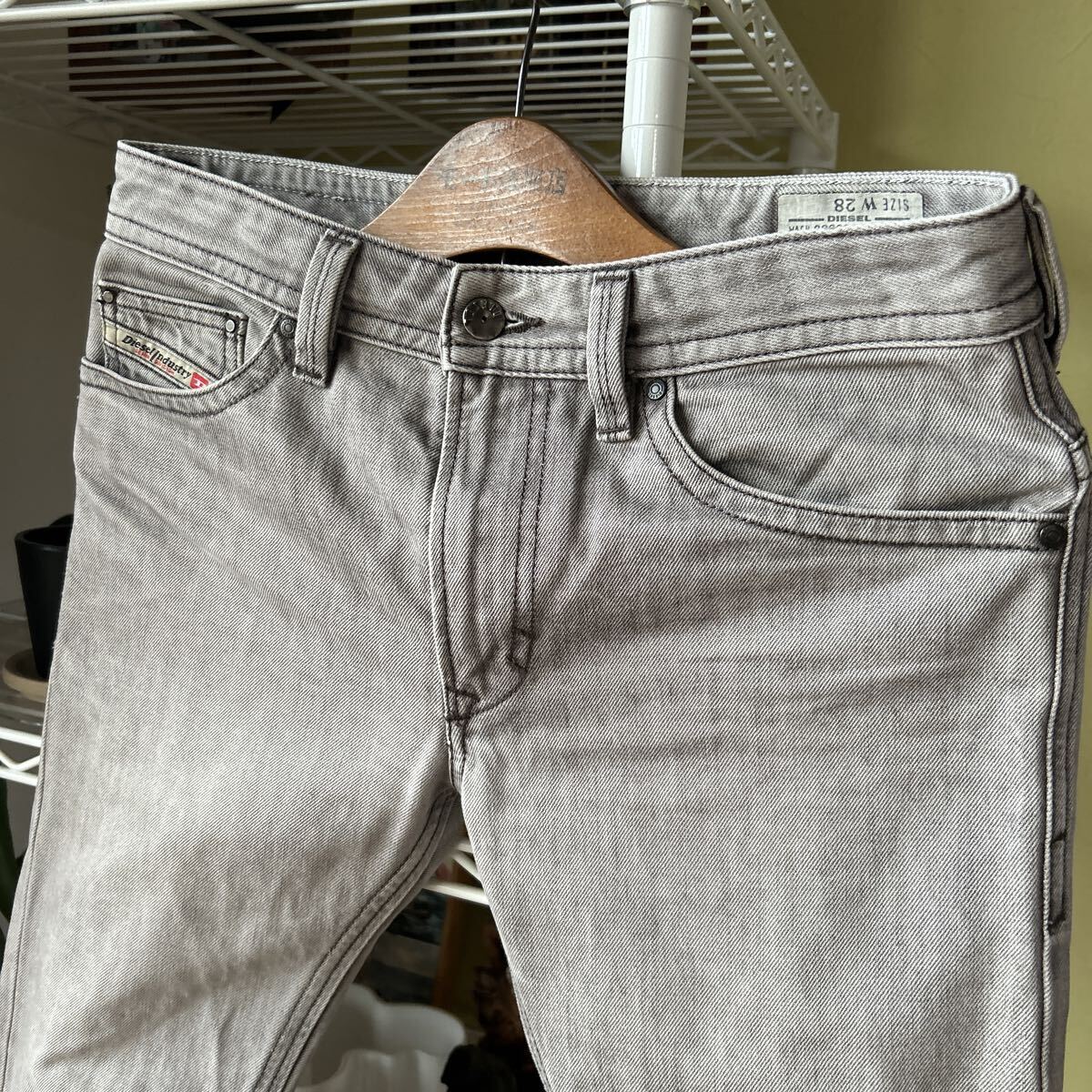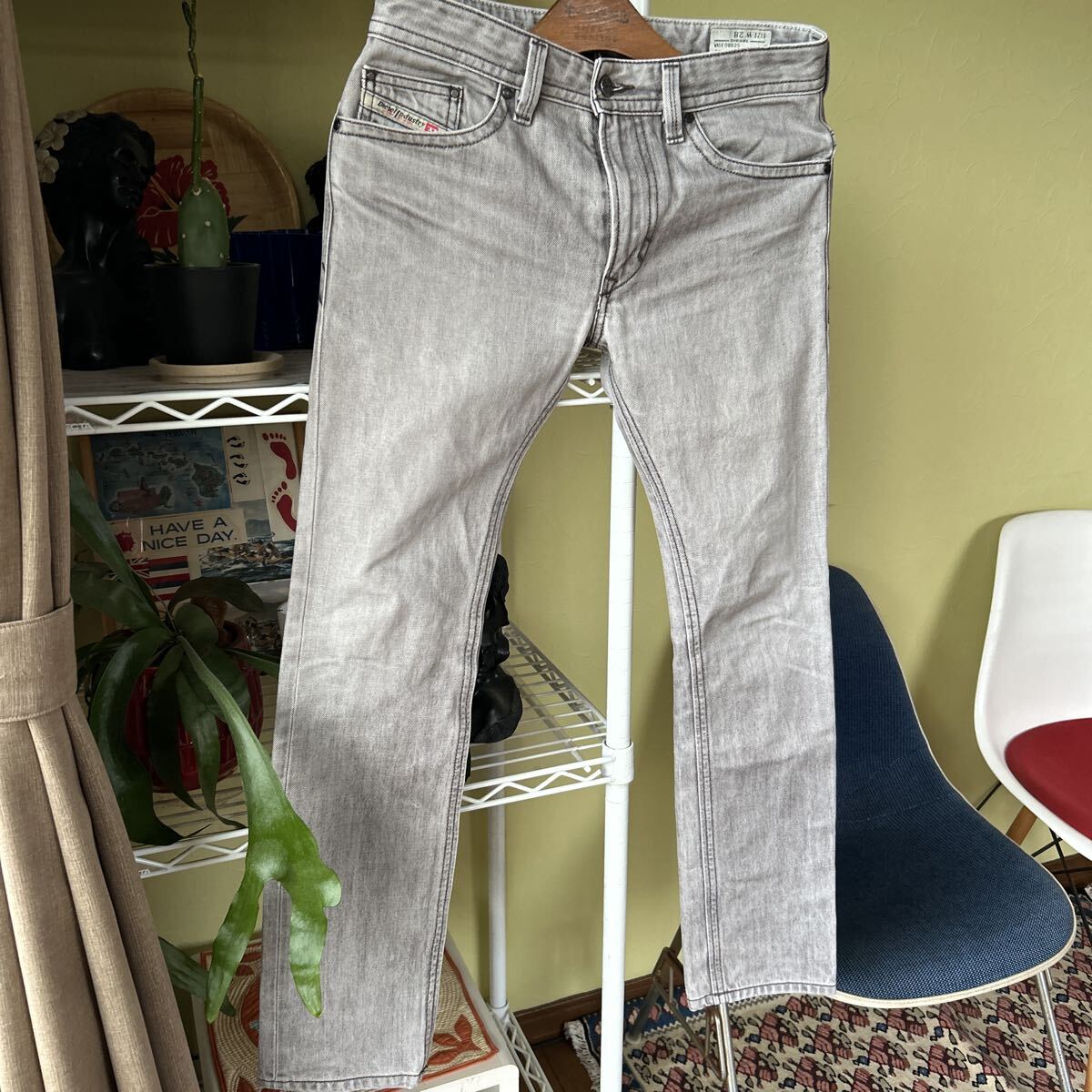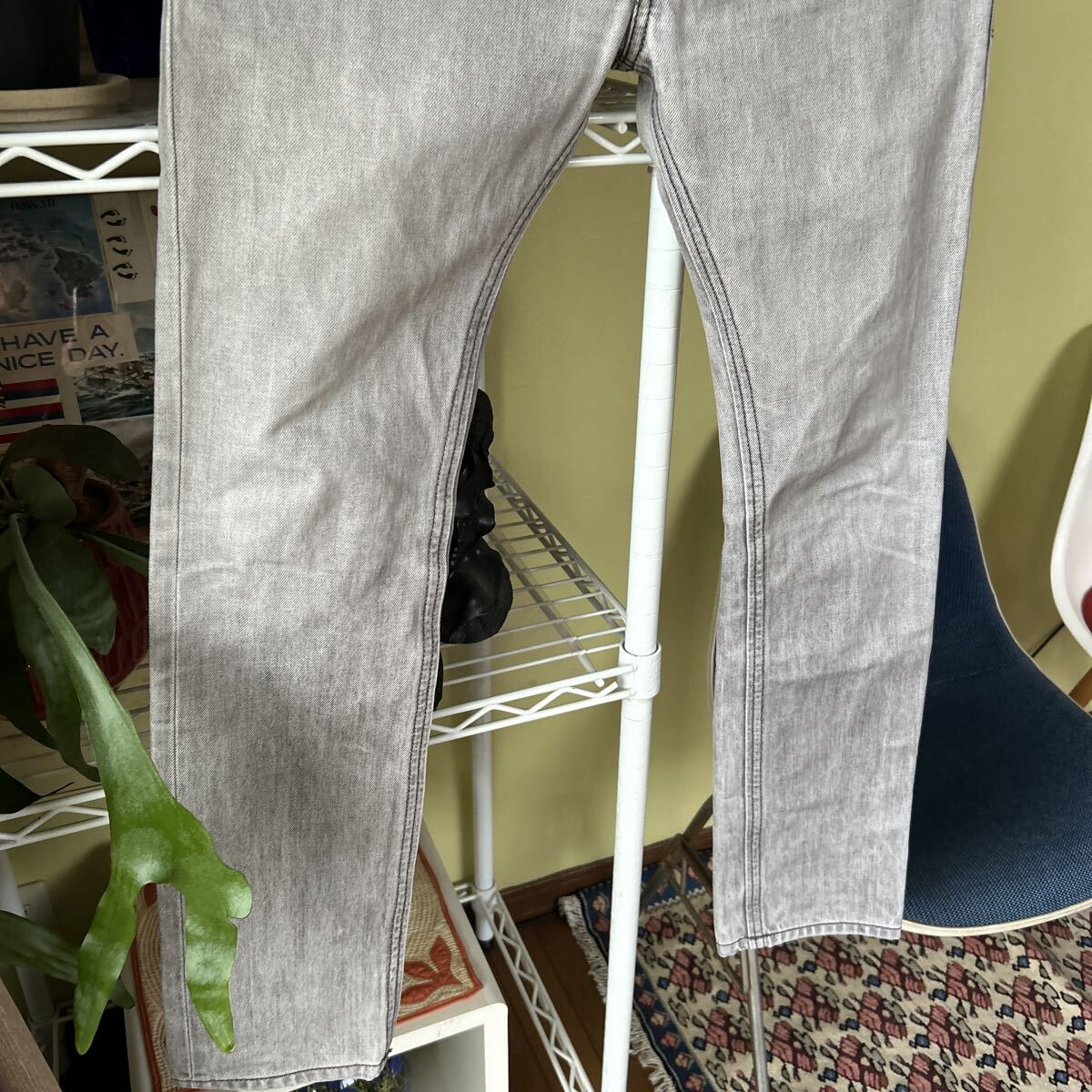 サイズMくらい 実寸約W77くらい (平置き)L79(股下縫い目から裾先)総丈100(サイド直線)。多少の誤差はお許しください。生地は張りがあり きれいで良い雰囲気です。しっかりした綿100デニム ストレート グレー できる限りダメージは説明させていただきますが、こちらが気づかない程度のわずかなしみ、よごれ、