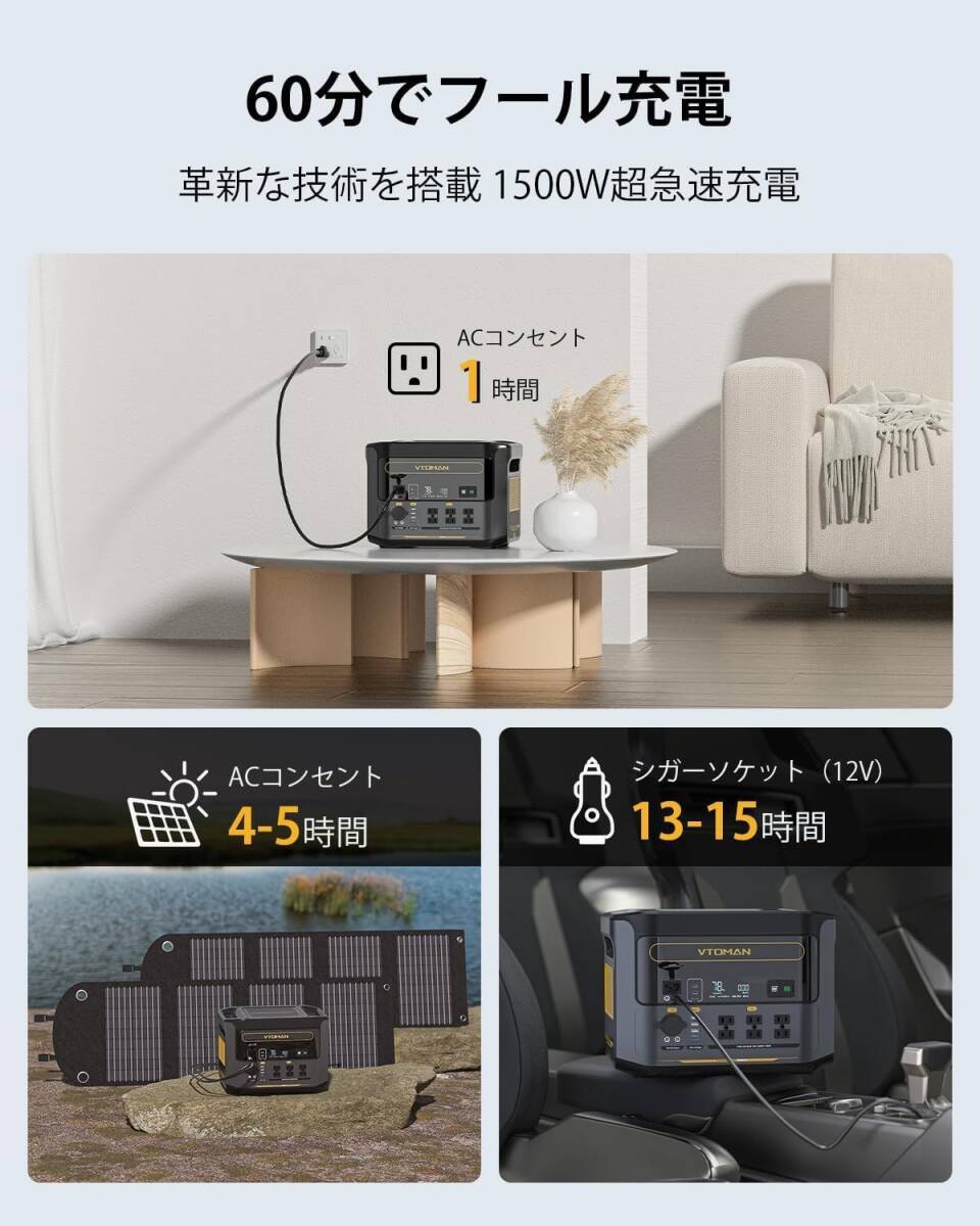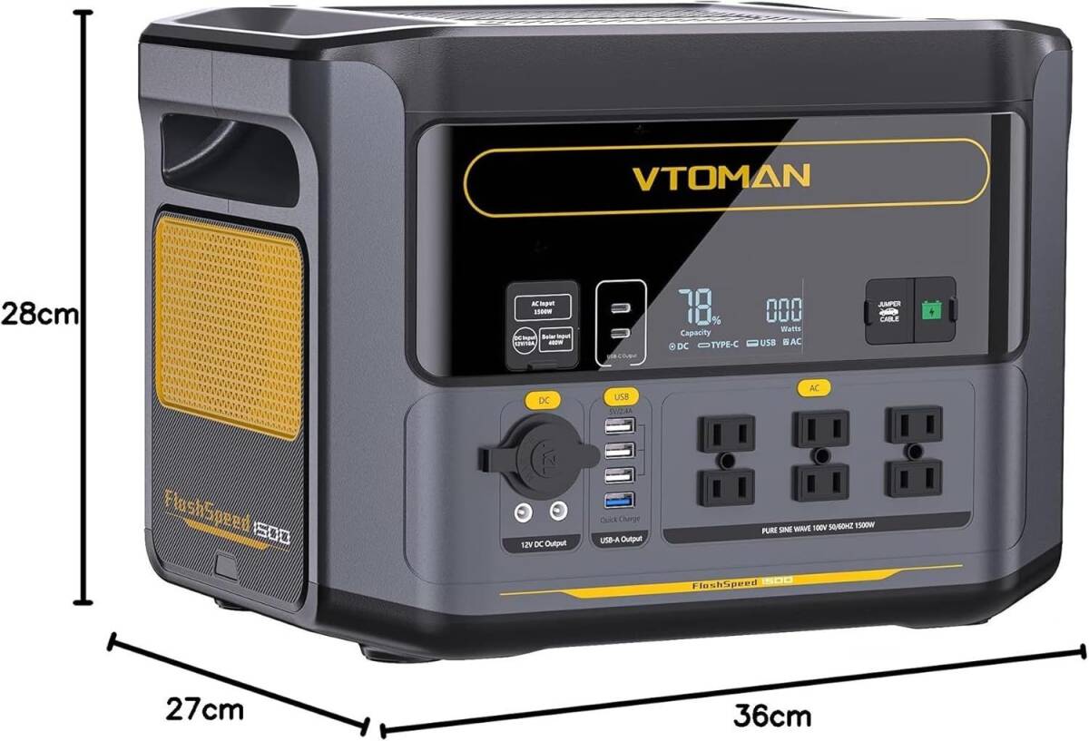 VTOMAN FlashSpeed 1500 ポータブル電源 1500W 1548Wh 大容量リン酸鉄リチウムイオンバッテリー 3096Wh容量拡張可能 ジャンプスターター機能 出力ポート15口 UPS機能 災害用 防災 停電対策 50/60HZ対応