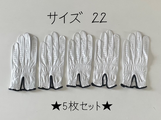 \☆在庫処分価格☆/ 【送料185円】☆ゴルフ 手袋 左手 ゴルフグローブ 白 ホワイト サイズ 22 5枚セット ①