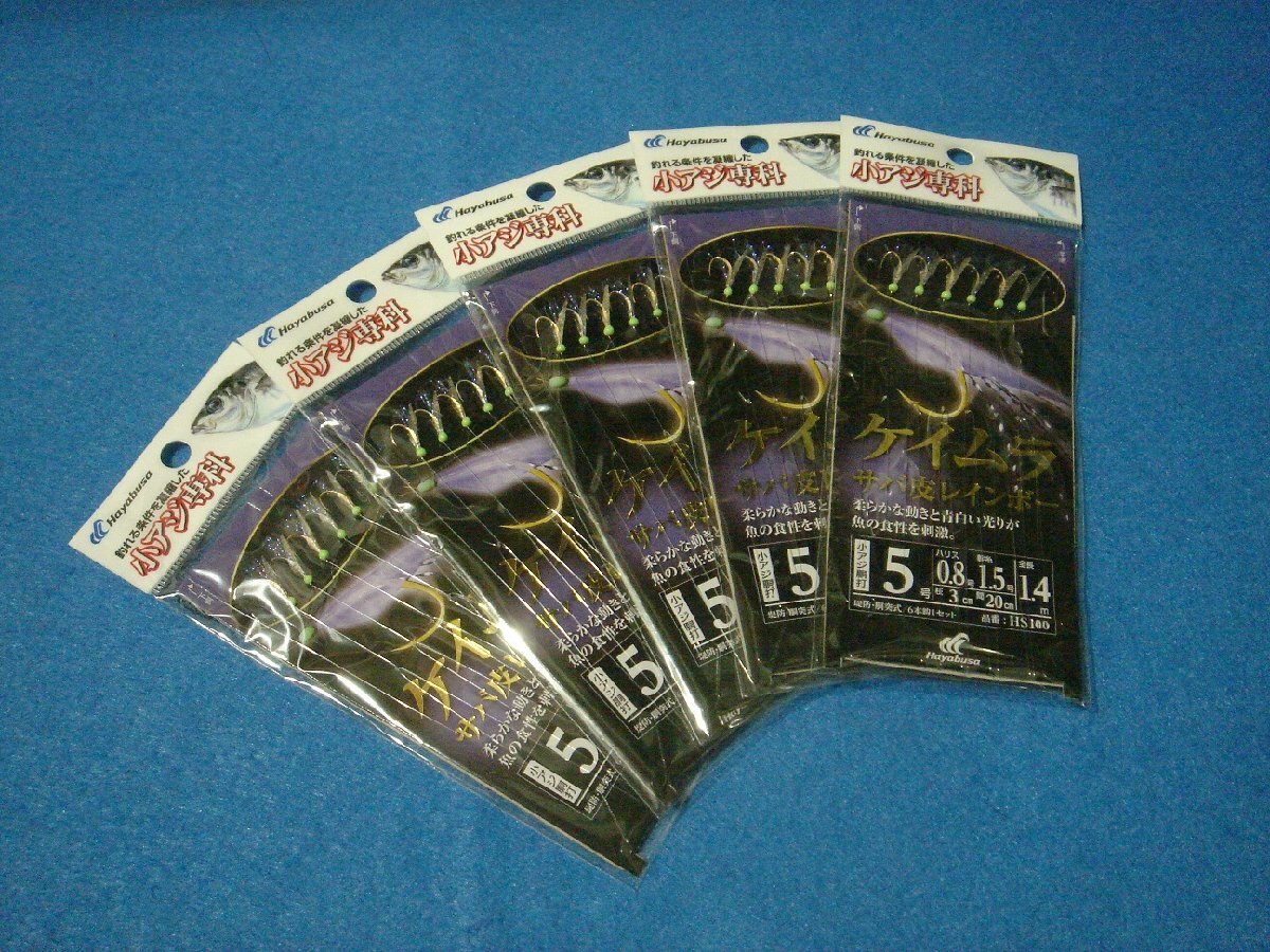 「ハヤブサ サビキ 小アジ専科 ケイムラサバ皮レインボー 5号」の5枚セットです。