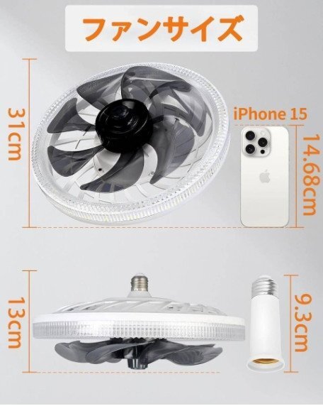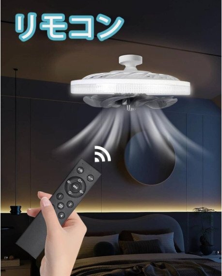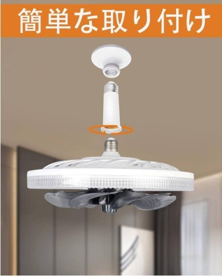 【取り付け簡単】従来のシーリングファンに比べて、ソケットファンライトは普通の電球のように簡単に取り付けられ、完全にワイヤレスで、ごちゃごちゃしません。E26/E27ランプソケットに適合し、ほとんどの電球ソケットと互換性があります。