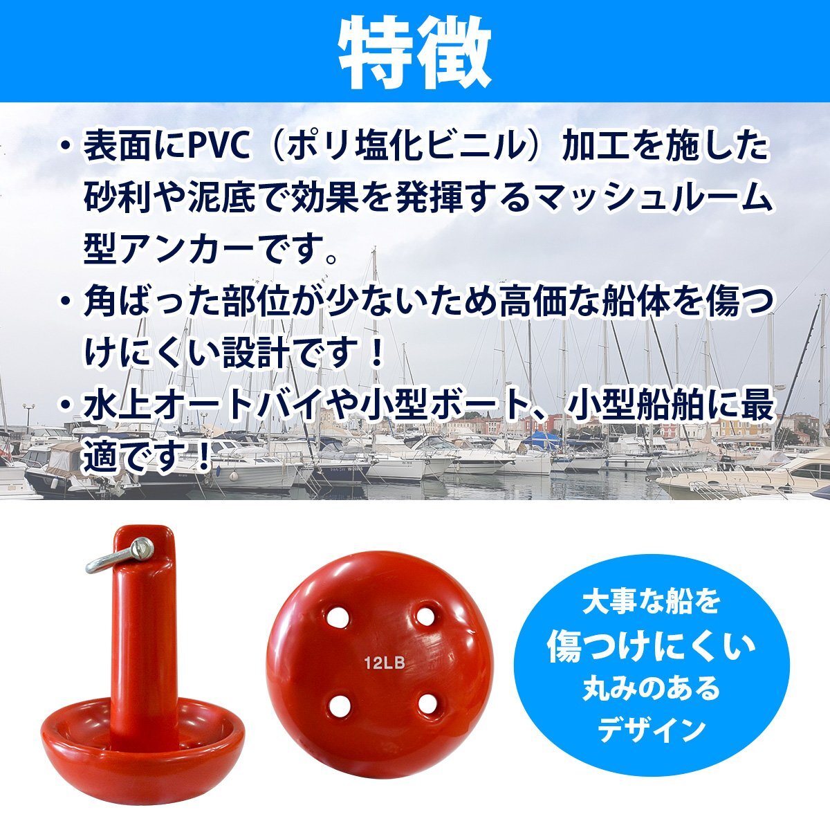 12LB 5.5kg 5.5キロ マッシュルームアンカー 錆に強い PVCコート ジェットスキー ゴムボート 船 赤 レッド アンカー 錘 碇