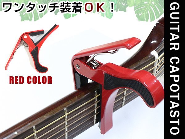 メール便 ギターカポ☆アコースティックギター フォークギター エレキギター 対応 バネ式クリップタイプ カポタスト カポ レッド 赤