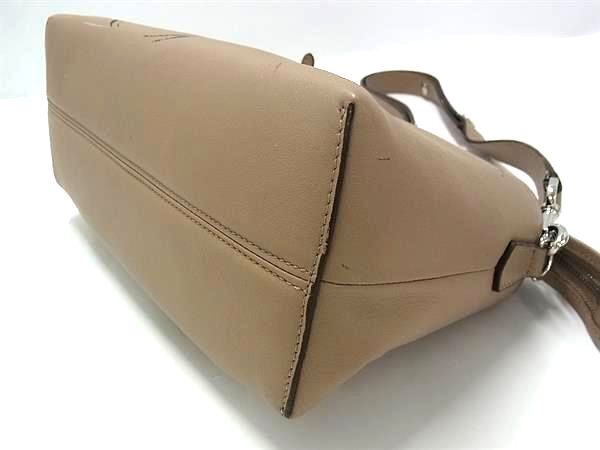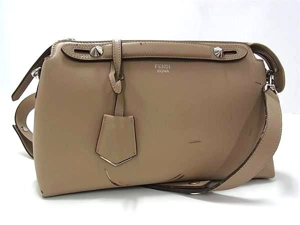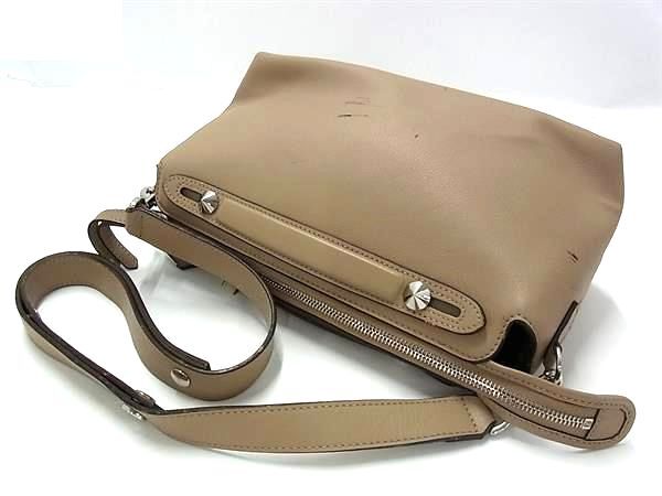1円 FENDI フェンディ バイザウェイ レザー クロスボディ ショルダーバッグ 斜め掛け 肩掛け レディース グレージュ系 FQ3435