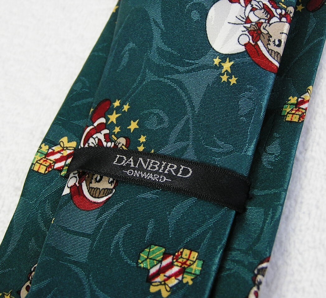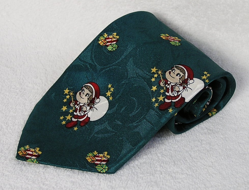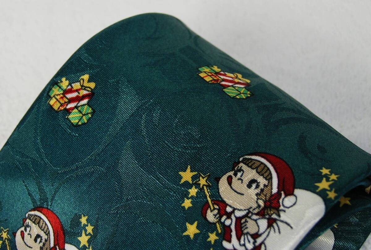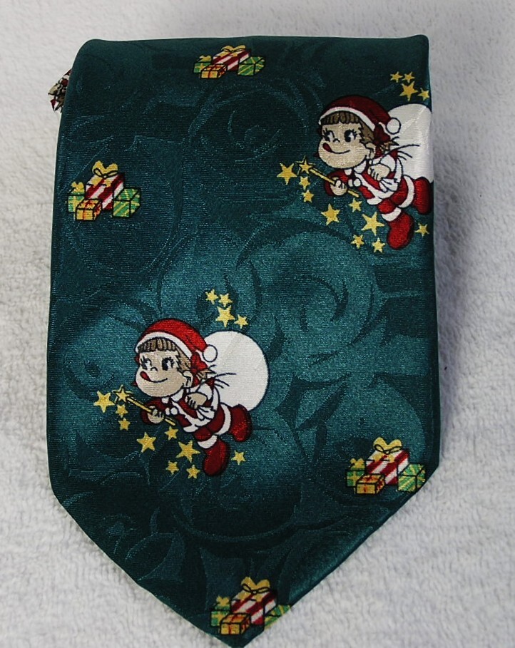 光沢感のある緑色ベースにペコちゃんサンタ柄のネクタイです。