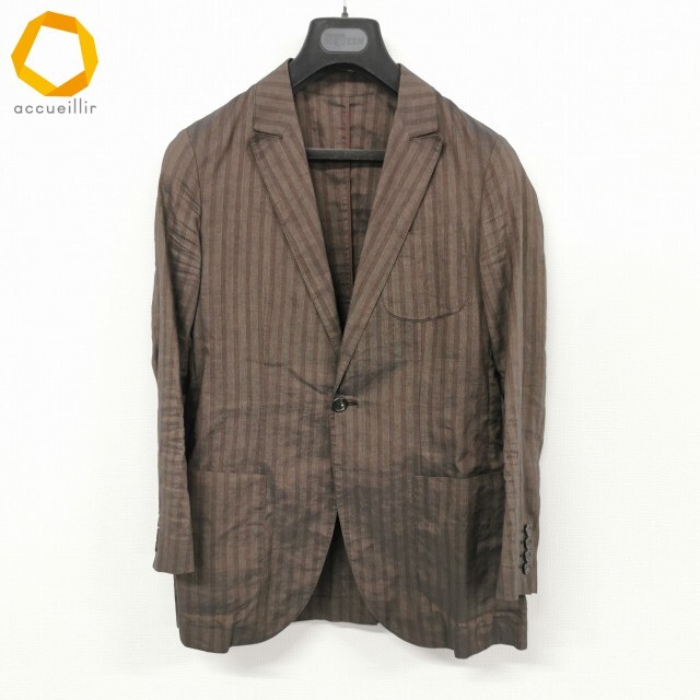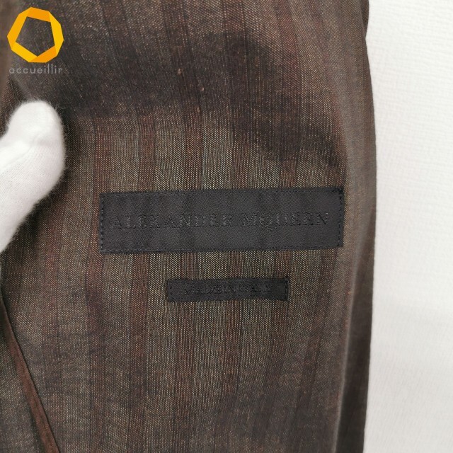 ●商品名(タイトル):#spc アレキサンダーマックイーン ALEXANDERMQUEEN ジャケット S1B ストライプ 46 茶系 麻混 イタリア製 ハンガー付き メンズ [979402]