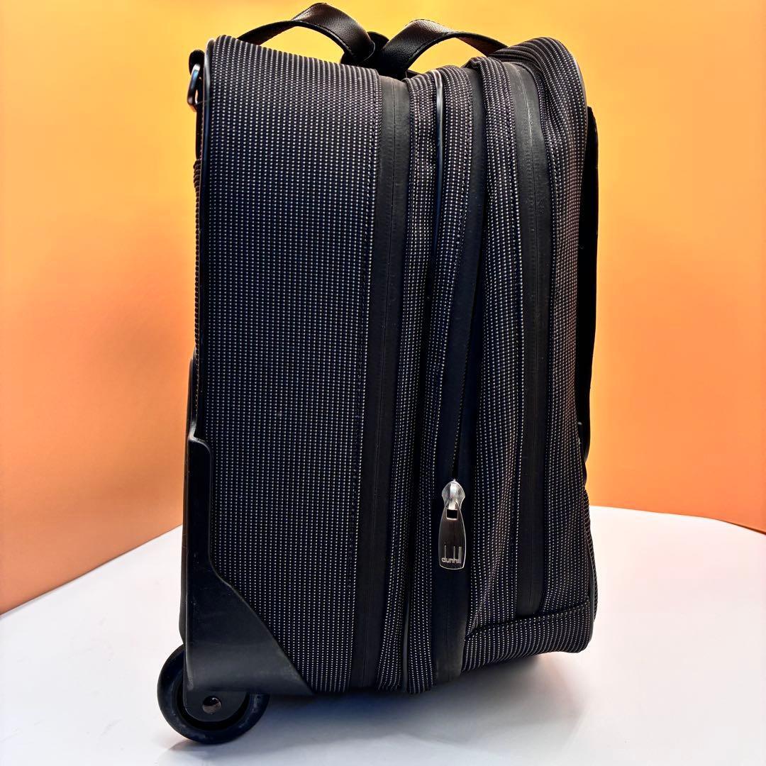 dunhill ダンヒル キャリー ガーメント ビジネストロリー 2輪キャリー 出張バッグ 機内持ち込み トロリーバッグ キャスター付き ナイロン レザー ビジネスバッグ スーツケース ブリーフケース 大容量 多機能 黒 ブラック 旅行バッグ