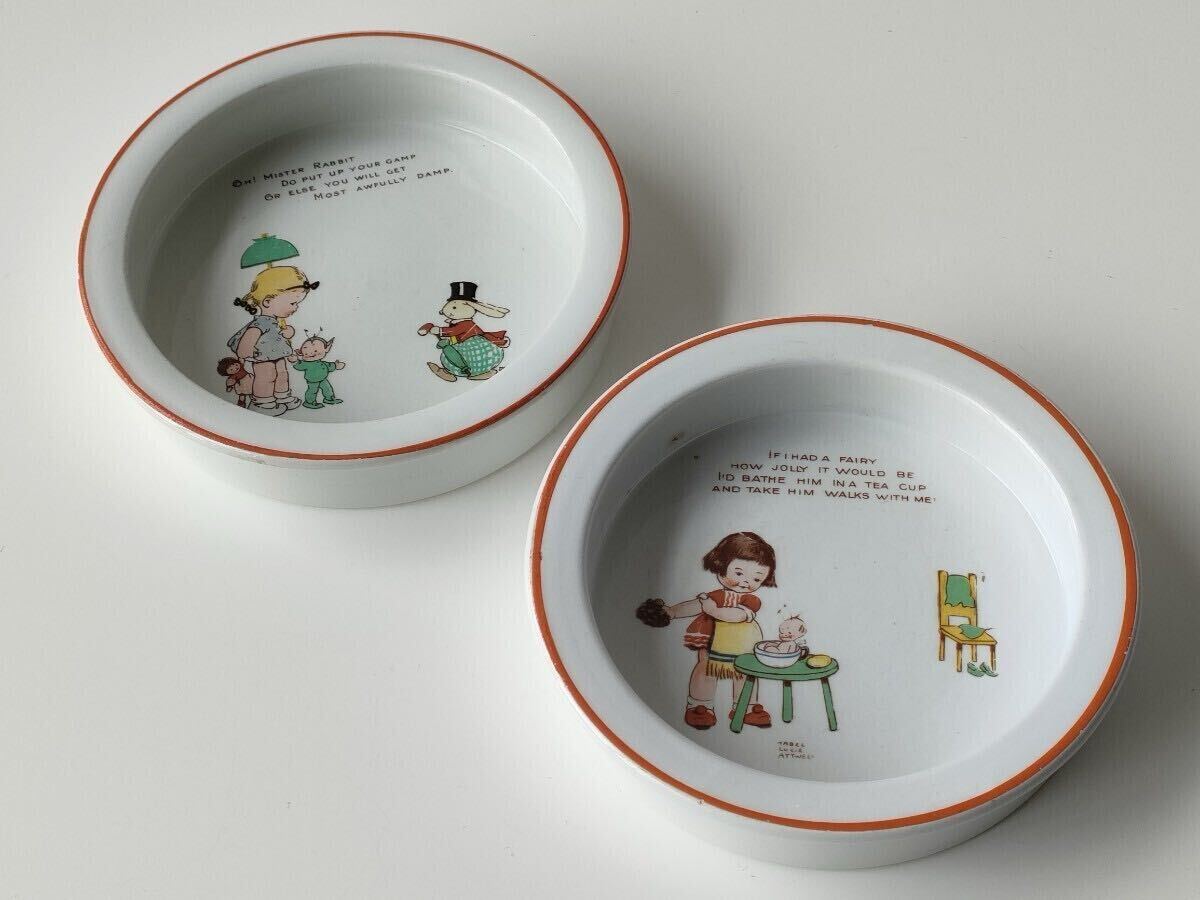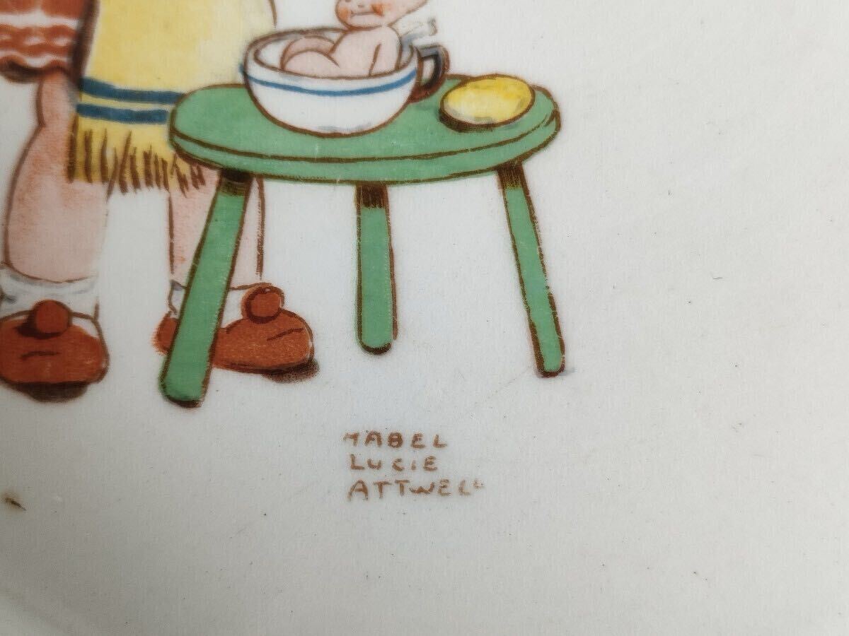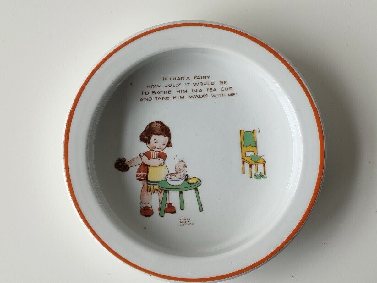 Mabel Lucie Attwell(メイベル・ルーシー・アトウェル)による「Fairy Wash Time」という絵柄の子供用食器(プレート)です。