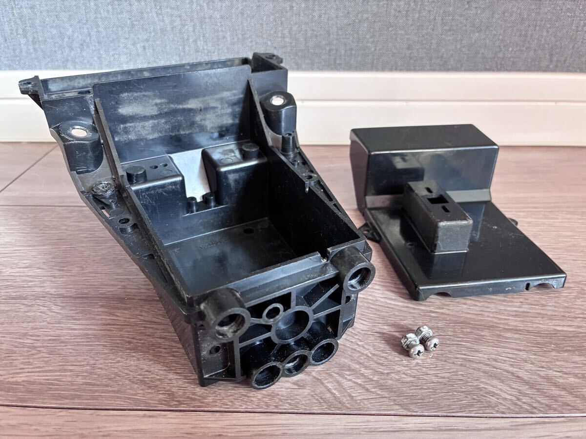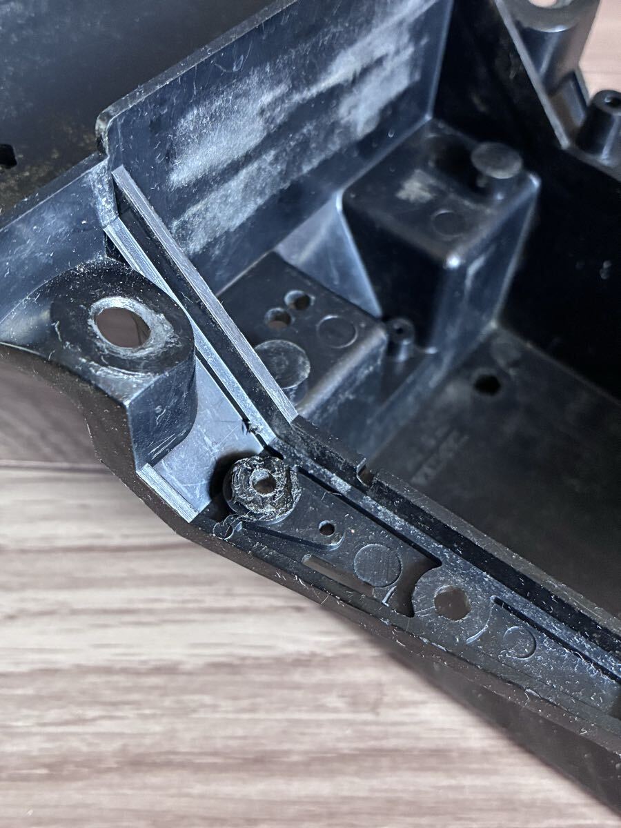 メカボックスの蓋の側面に穴あけ加工が2カ所あります(写真10枚目)