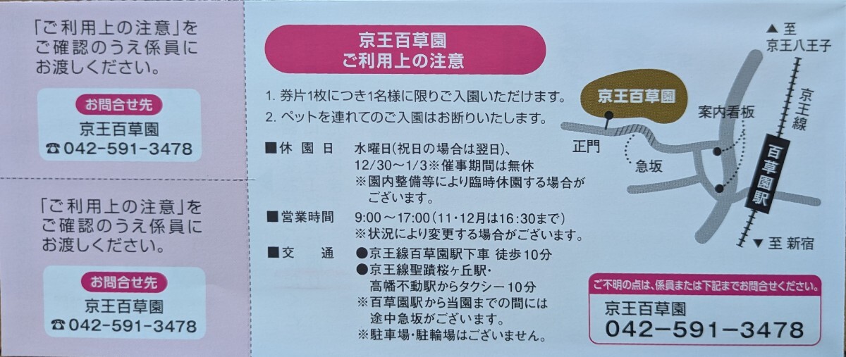 京王百草園の入園券です