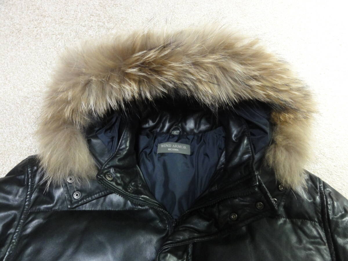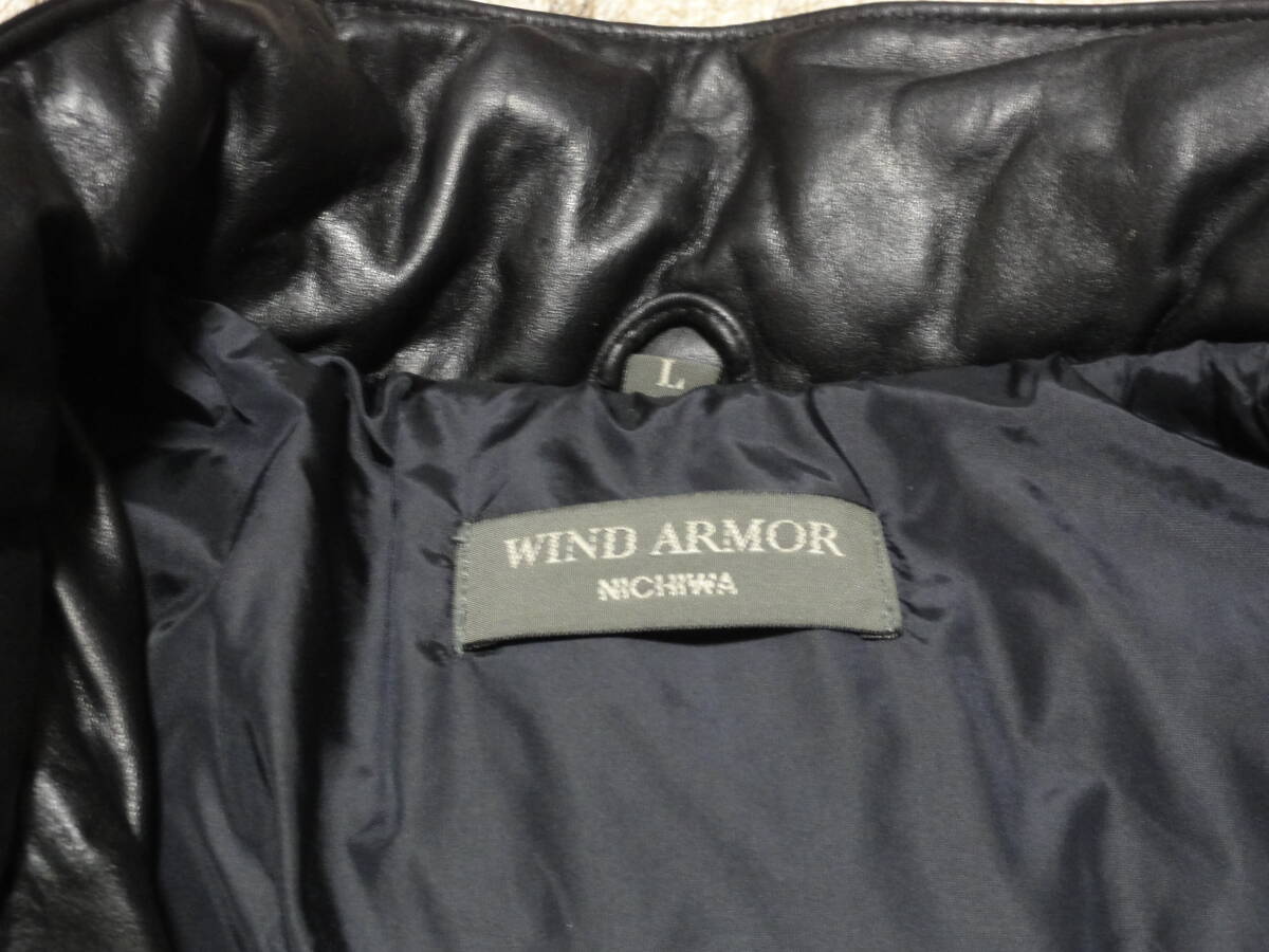 <中古品>WIND ARMOR レザーダウンジャケット ブラック Lサイズ  ニチワ ウインドアーマー 牛革
