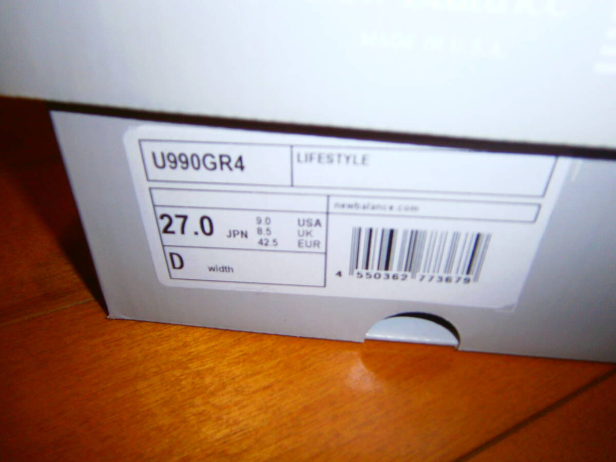 ニューバランス new balance U990GR4 US9.0 27.0cm Made in USA アメリカ製 グレー 990v4