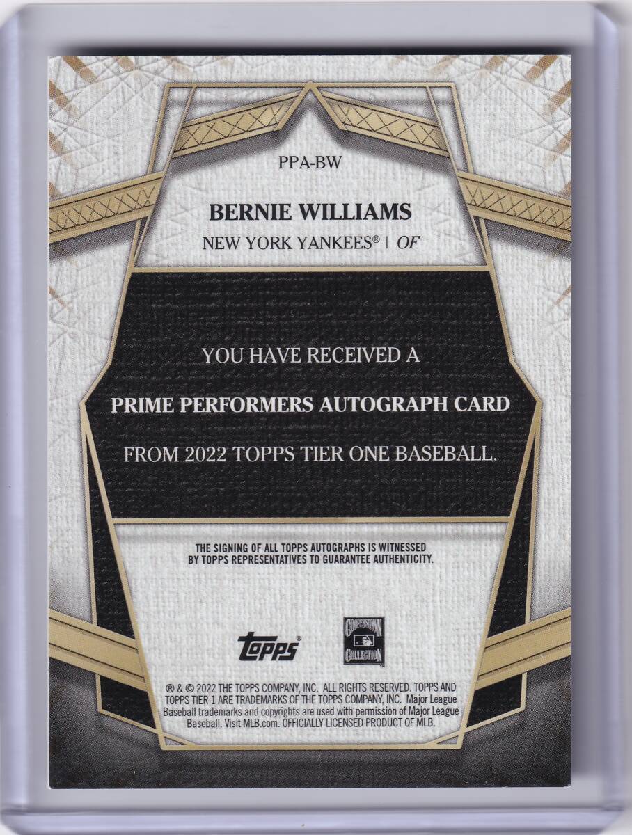 BERNIE WILLIAMS 直筆サインカード 125枚限定 2022 TOPPS TIER ONE AUTOGRAPH CARD / バーニー・ウィリアムス / AUTO