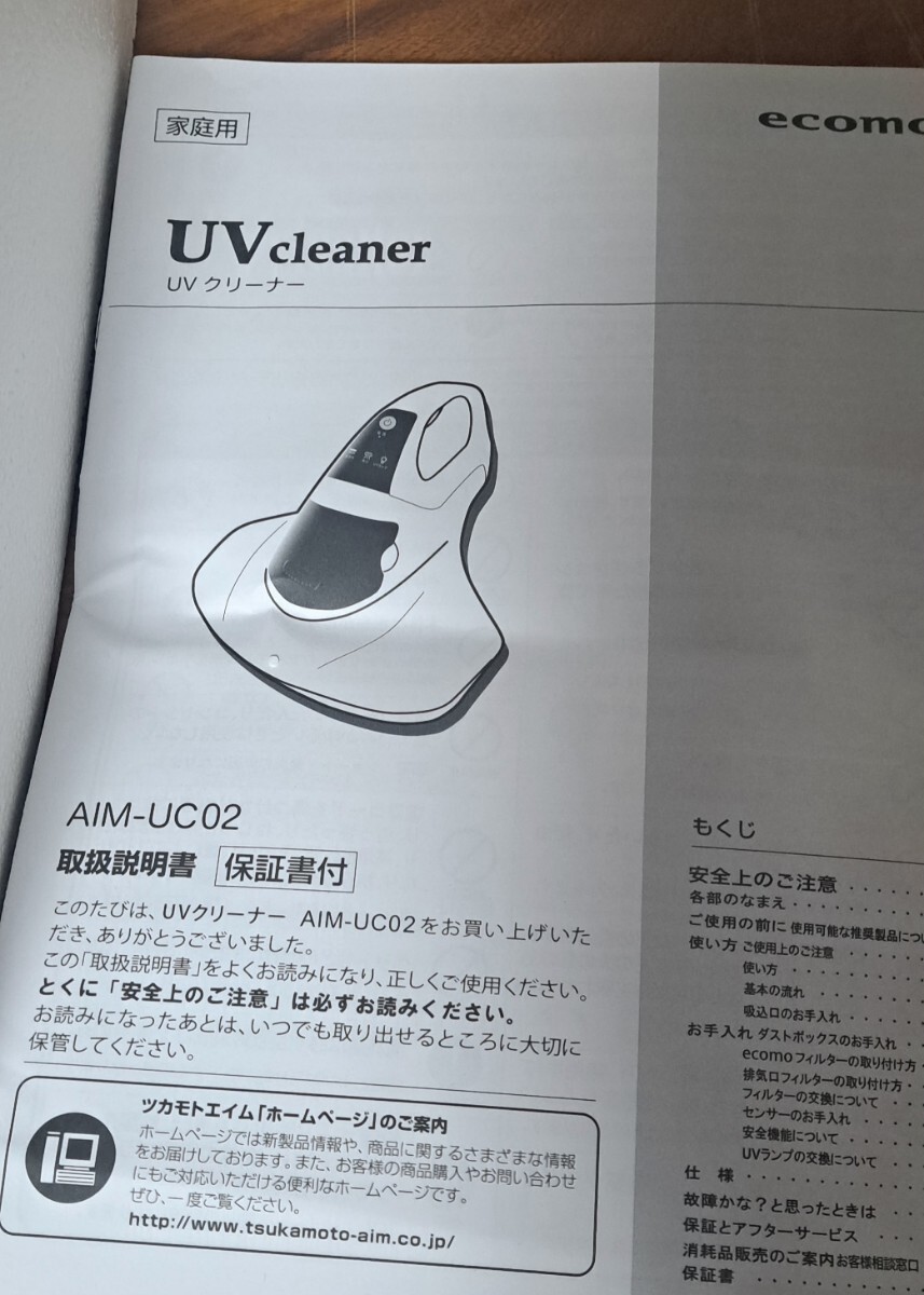 未使用品 ツカモトエイム UV 布団クリーナー ecomo エコモ UVクリーナー AIM-UC02 掃除機