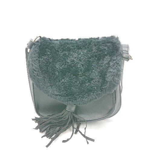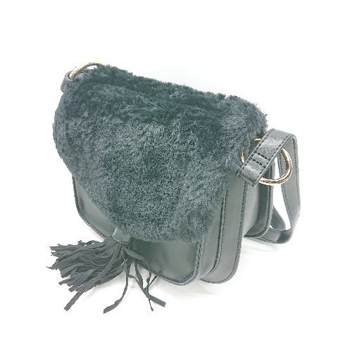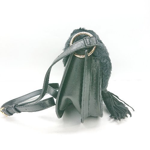 ◇ ⊇ CONTROL FREAK コントロールフリーク ファー フリンジ ショルダー バッグ ブラック レディース E