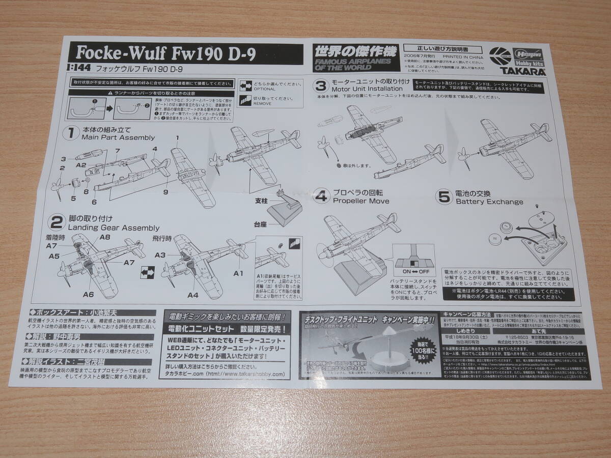 1/144 フォッケウルフ Fw190D-9 第3戦闘航空団第4飛行隊司令 オスカー・ロム中尉機 世界の傑作機シリーズ3 タカラ