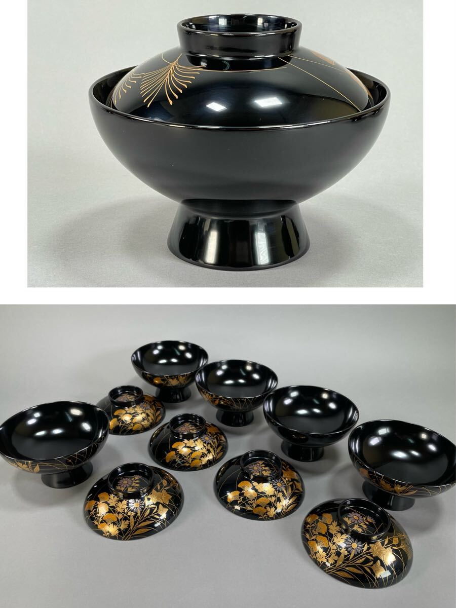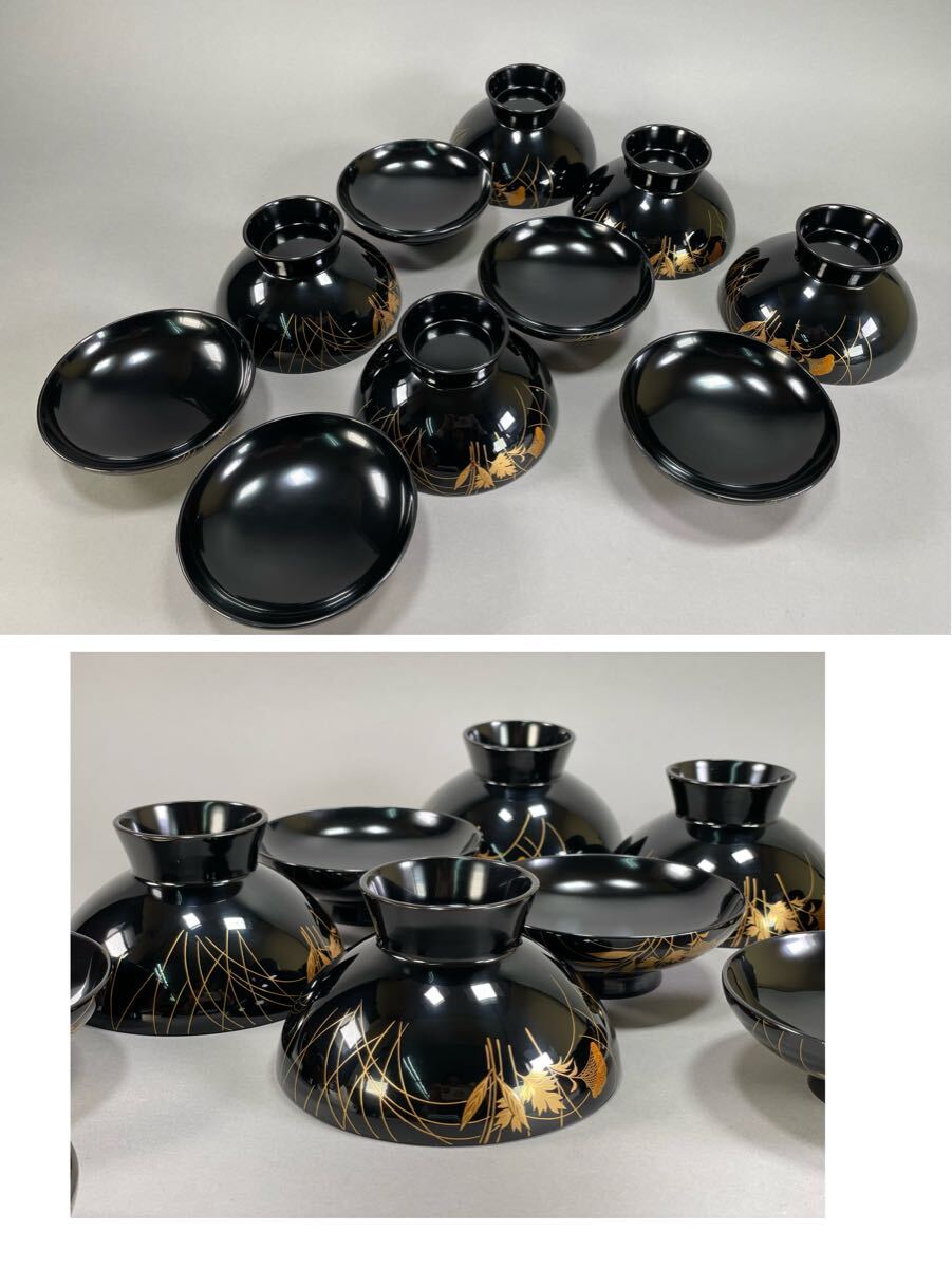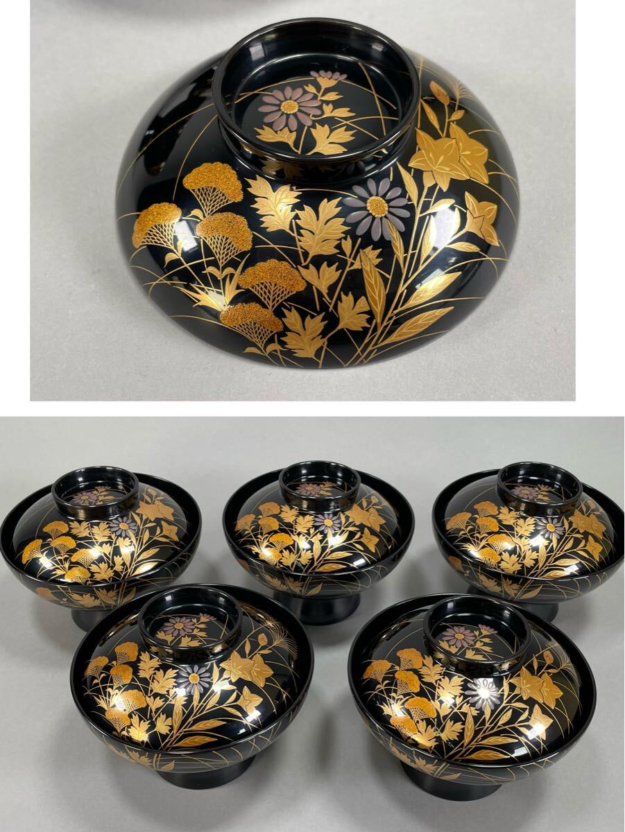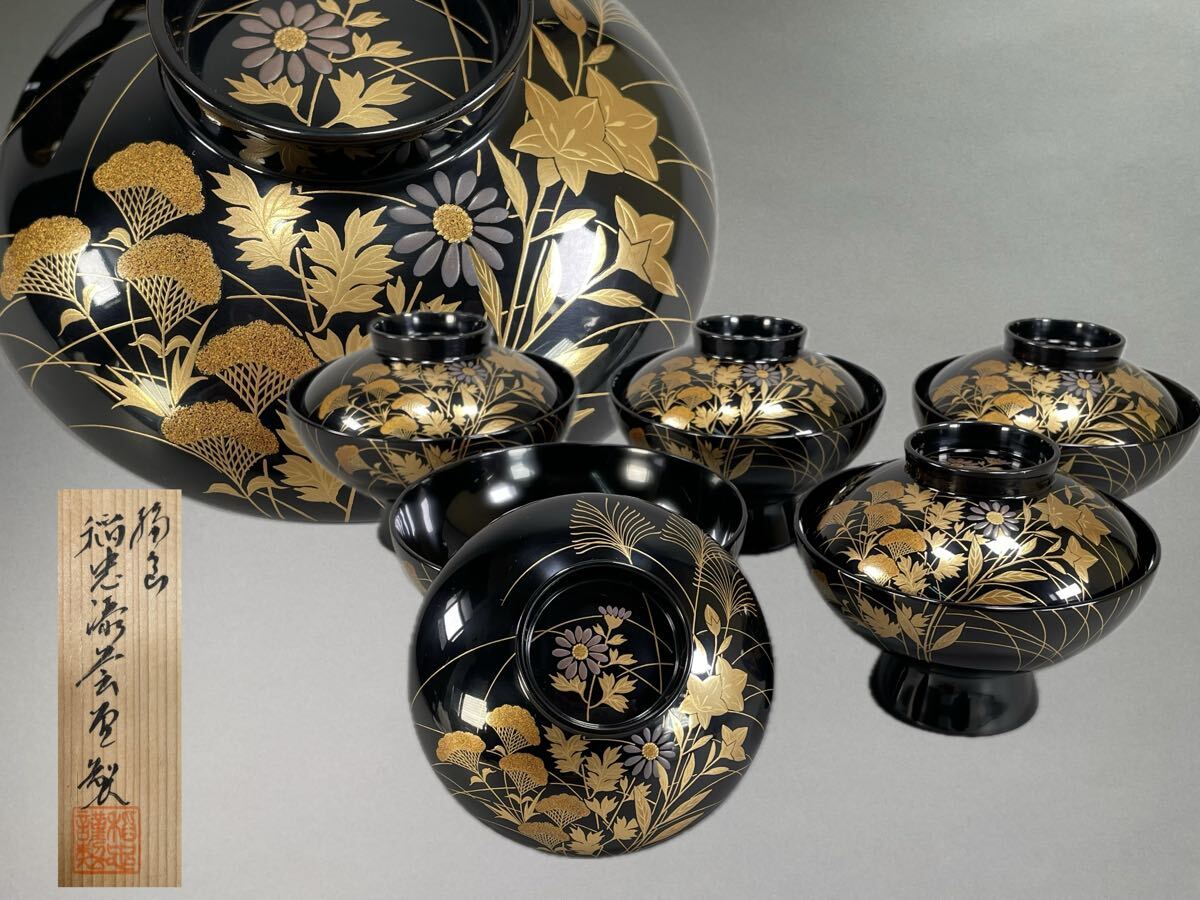 輪島塗 稲忠漆芸堂製 吸物碗 5客 極上本金秋草図蒔絵 吸物椀 汁椀 和食器 懐石料理 漆芸 漆器 共箱