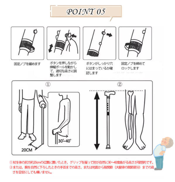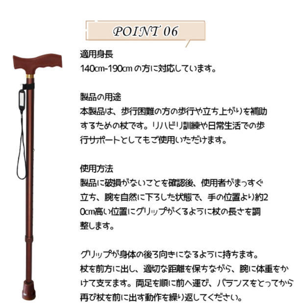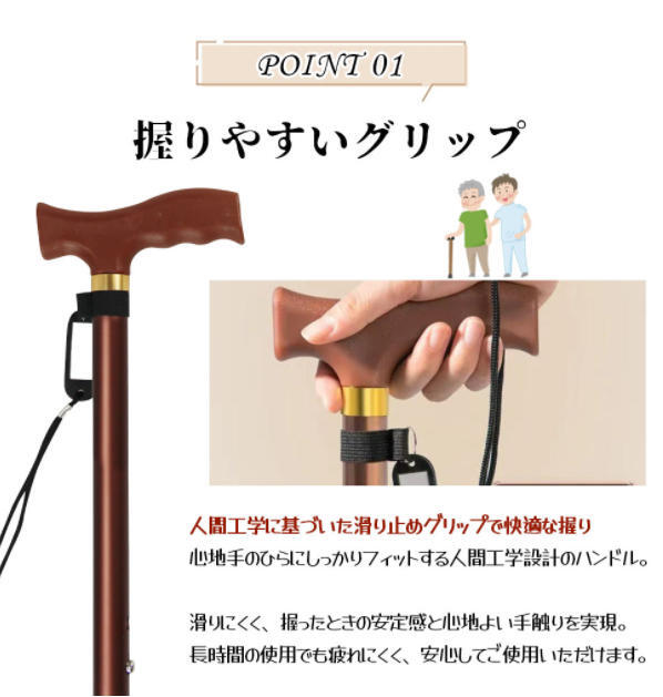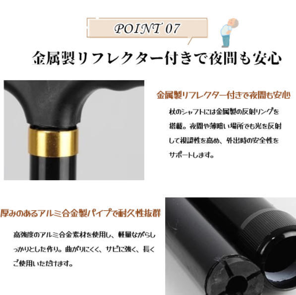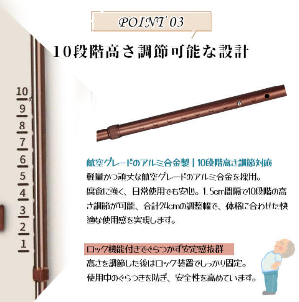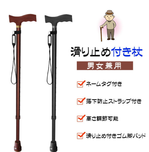 杖 滑り止め付き杖 140~190cm対応 握りやすい 10段階に高さ調節可能 男女兼用 軽量 安定感 耐久性 介護 高齢者