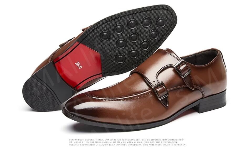 英倫風正方形頭本革ビジネス正装男性靴流行二重ボタンゆったり靴カジュアルカバー足