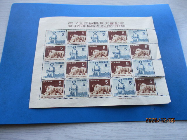 第7回国体 未使用 シートです。裏糊あります。切手の状態はいろいろですがシートの目打ちが切れています。