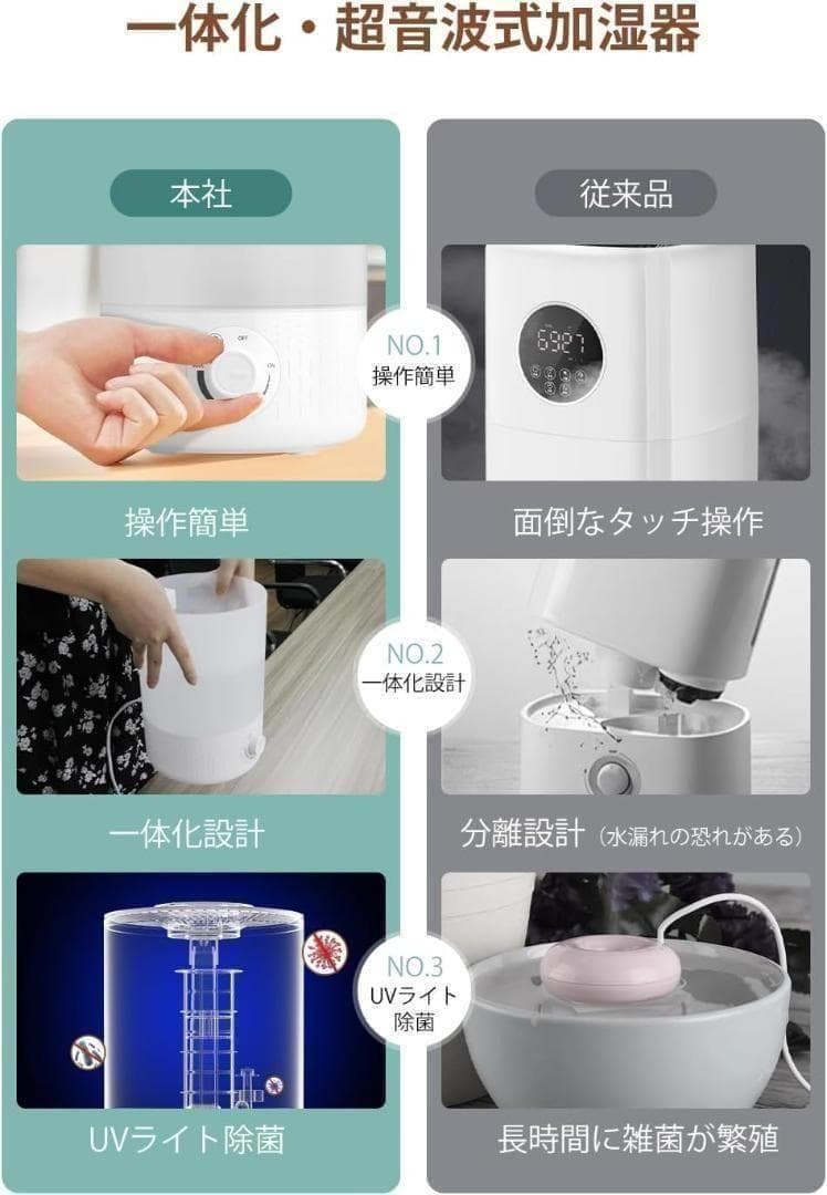 【超音波式加湿器・3.5L大容量・新一体化設計!】