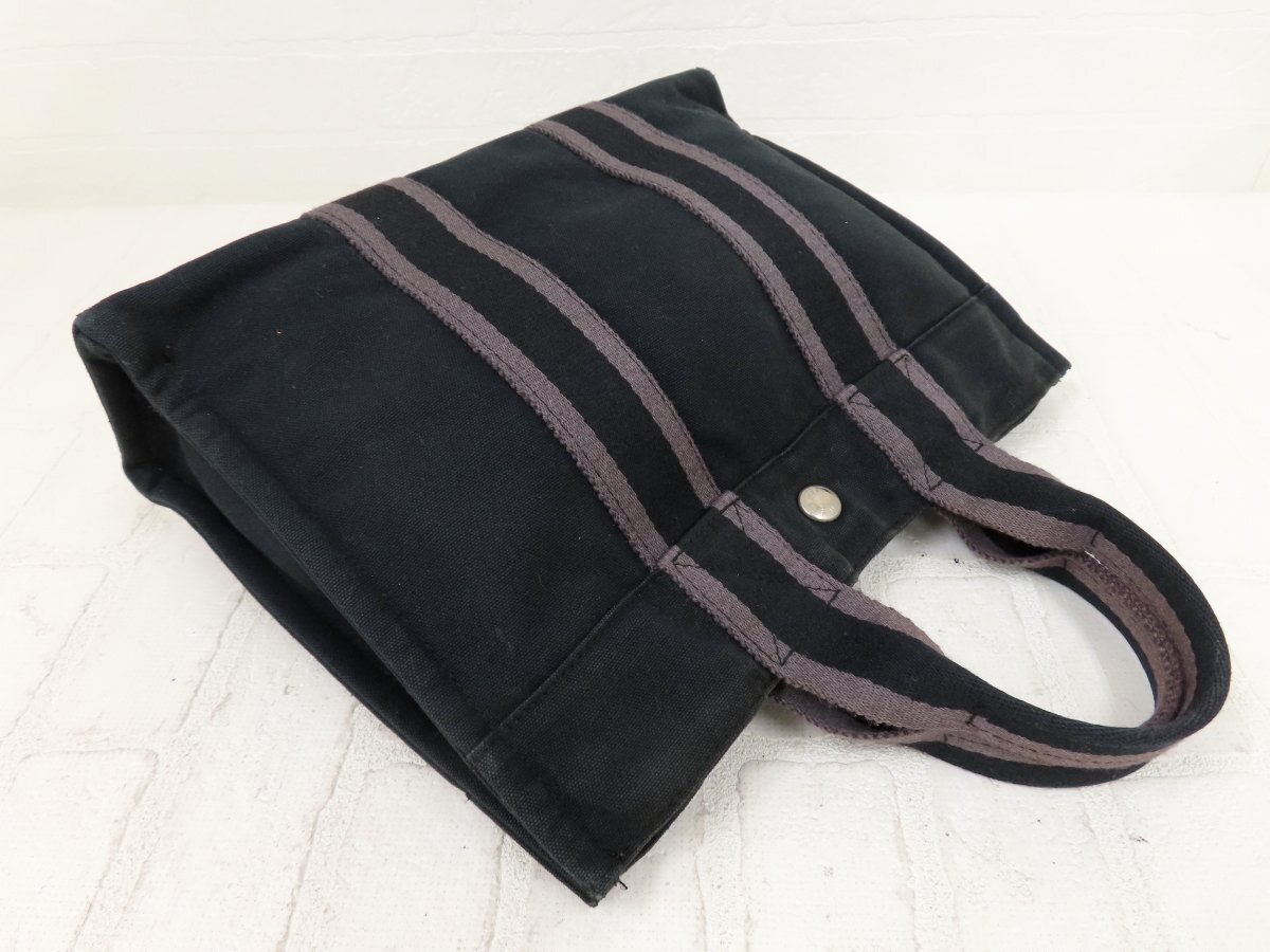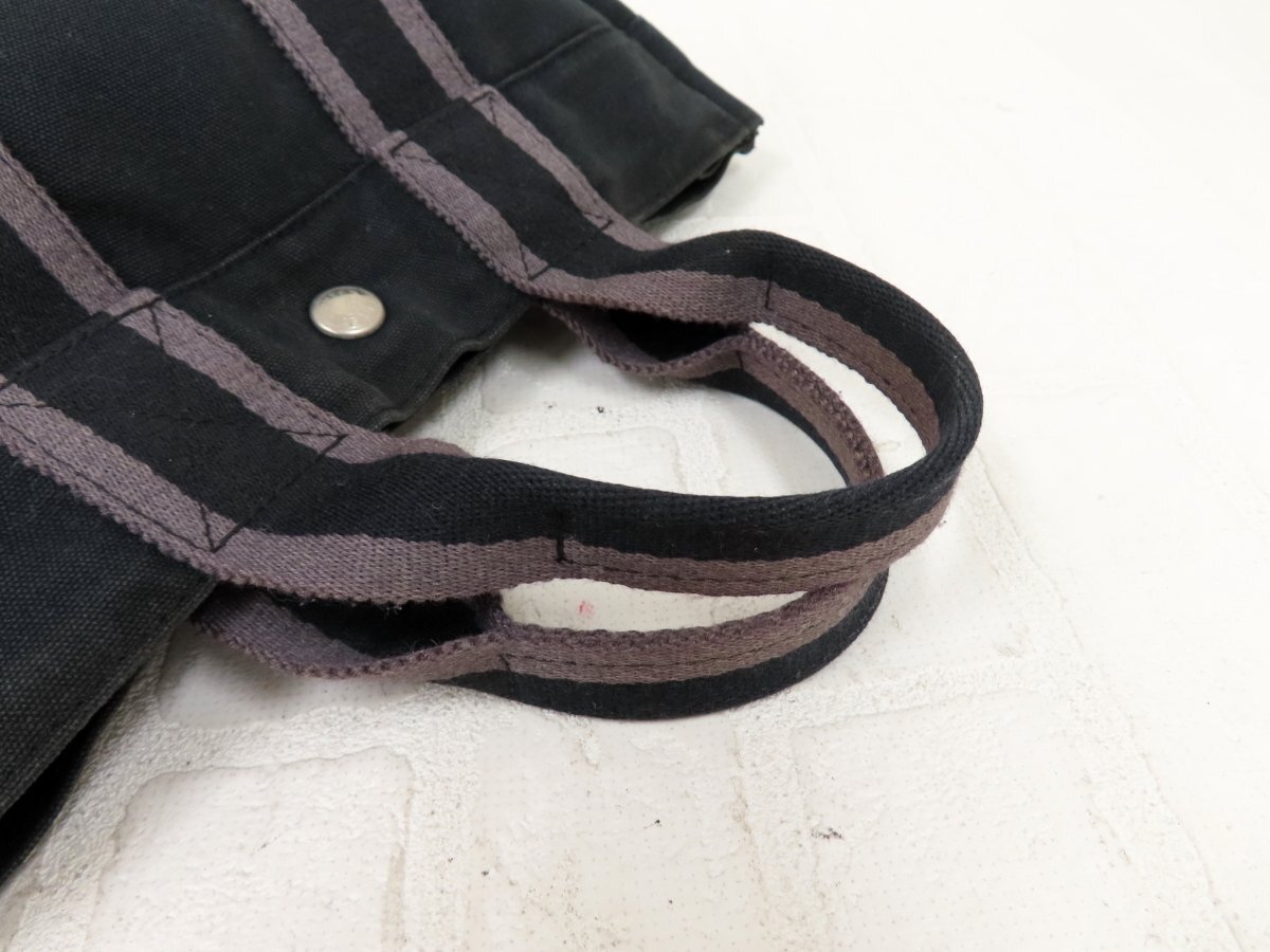 ◆美品◆HERMES エルメス◆フールトゥ◆キャンバス カーフ レザー 本革◆ハンド トート バッグ◆ブラック グレー シルバー金具◆A14564