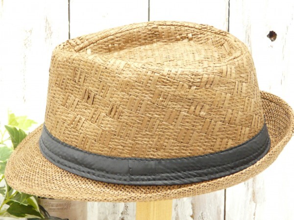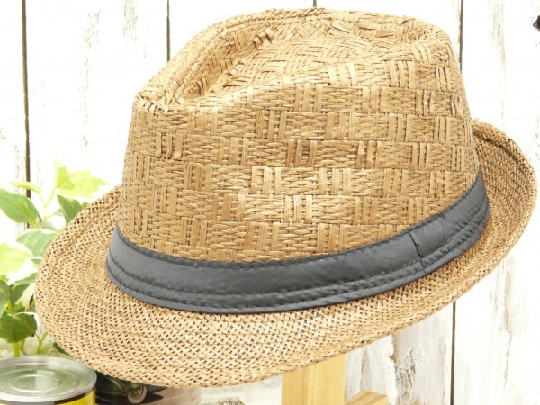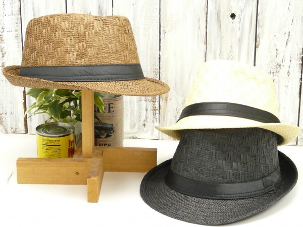 編みこみ 格子 フェドラハット シンプル ドット 中折れ ブラウン 男女OK 送料\350 ストロー パナマ