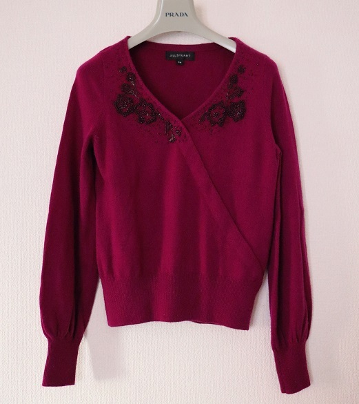 ハイデザイン JILLSTUART ジルスチュアート ビーズ飾り付き長袖ニットセーター FR 羊毛 カシミヤ パープル