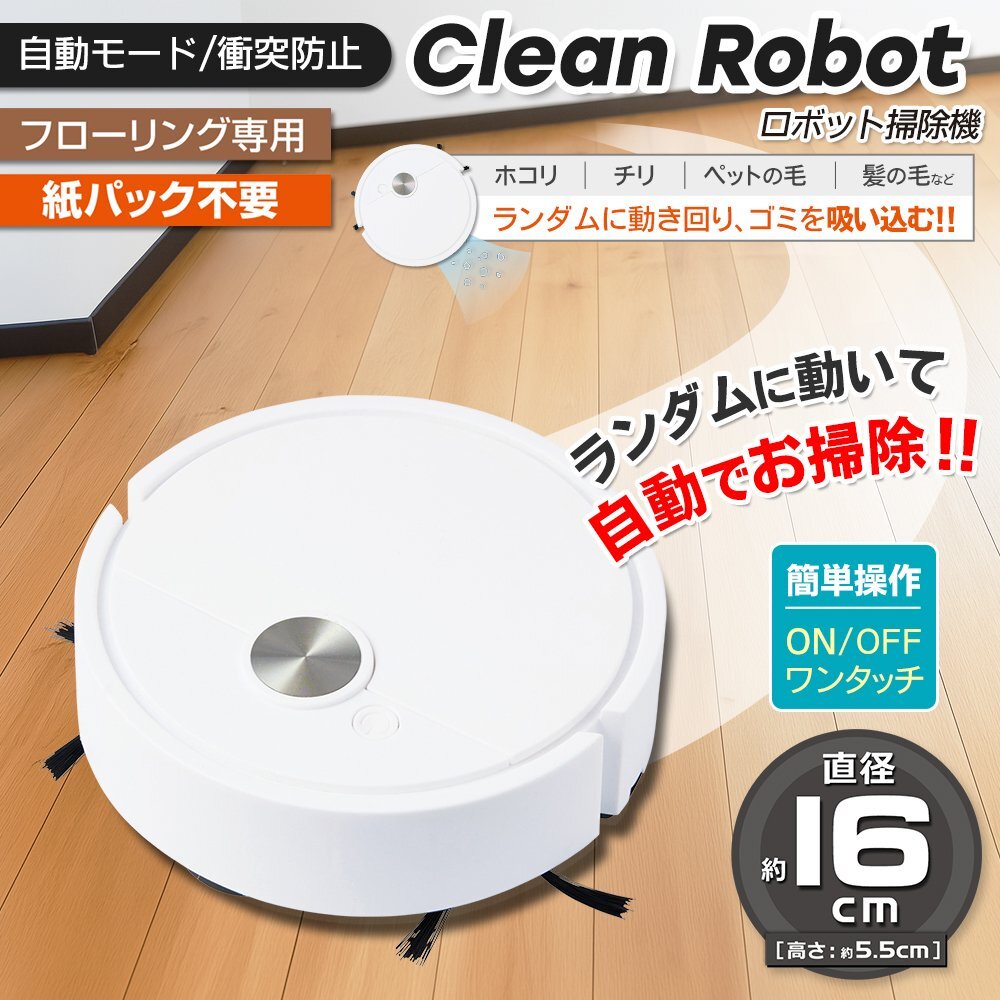 掃除機 自動ロボット掃除機 直径約16cm×高さ約5.5cm 電池式 コンパクト 紙パック不要 フローリング専用 送料無料 7M◇ ロボット掃除機U