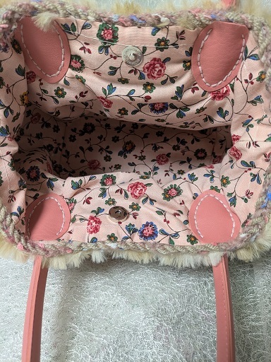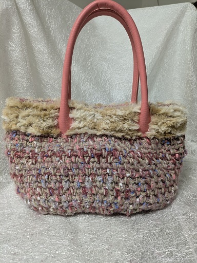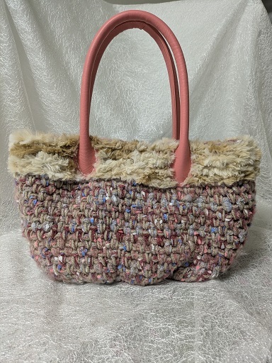 カバン口にはモコモコの毛糸で縁取り、持ち手を付けたことで上品な仕上げとなっています。