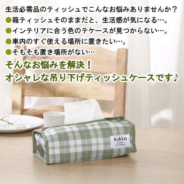 ティッシュケース 収納 カバー 縦型 チェック柄 車内 インテリア 壁掛け おしゃれ プレゼント 景品 新生活 送料無料 100K◇ KUKKA:ベージュ