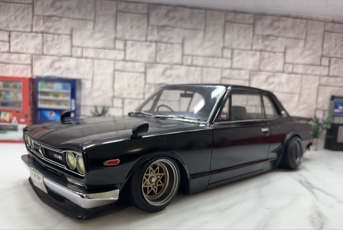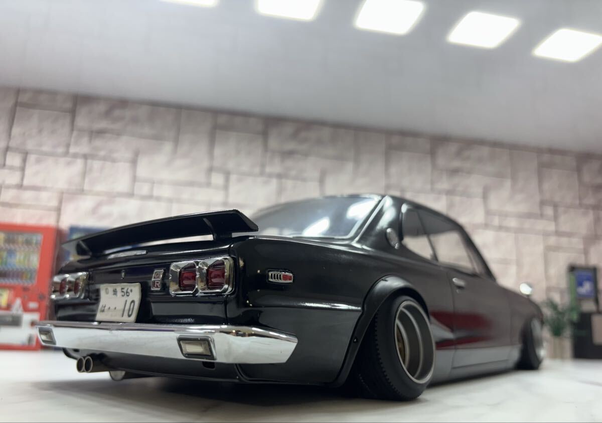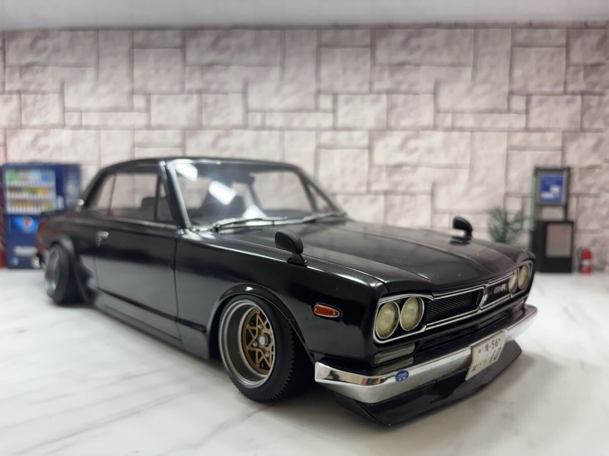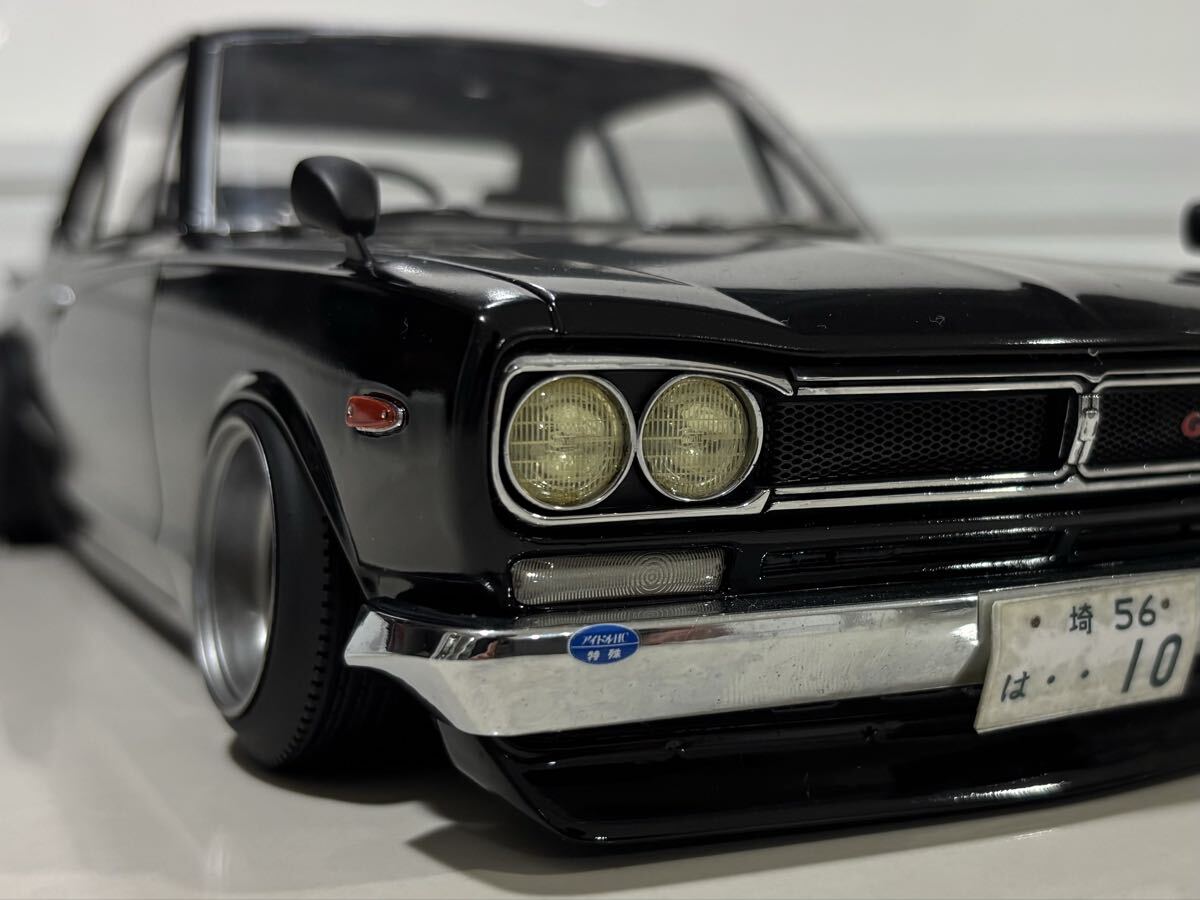 ホワイト車両を未販売のブラックに全塗装した希少な1/12サイズのハコスカGT-Rです。