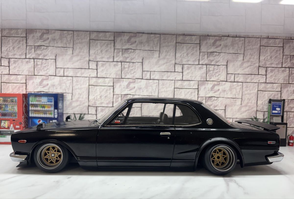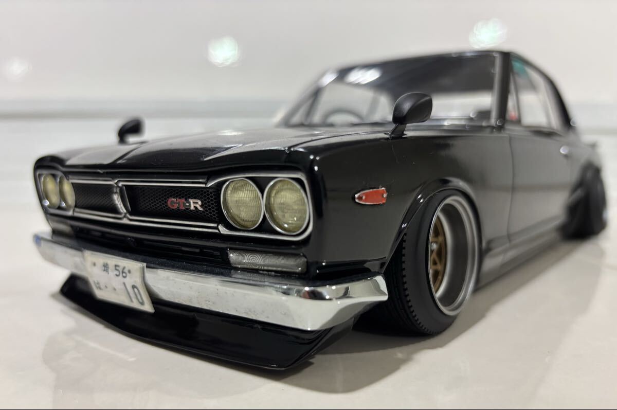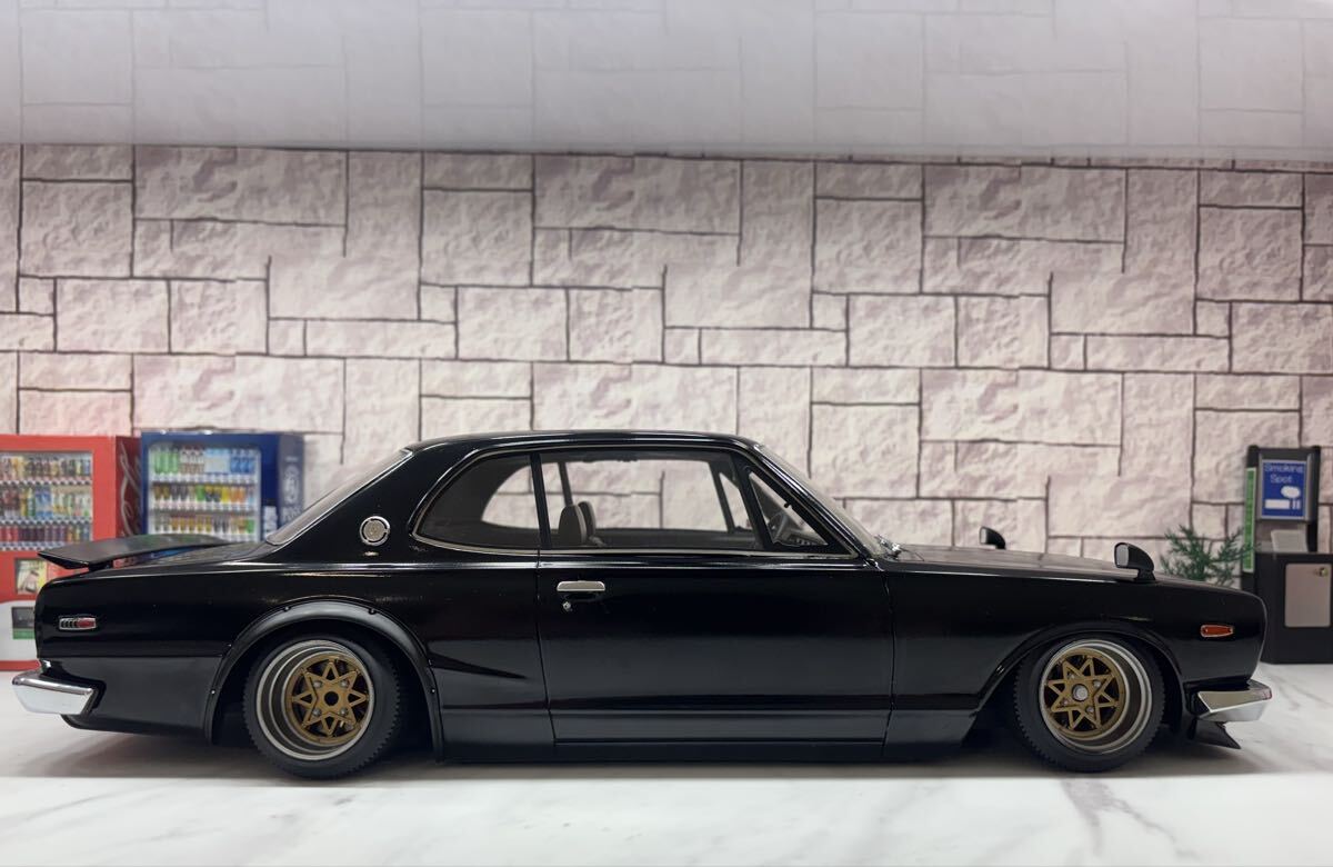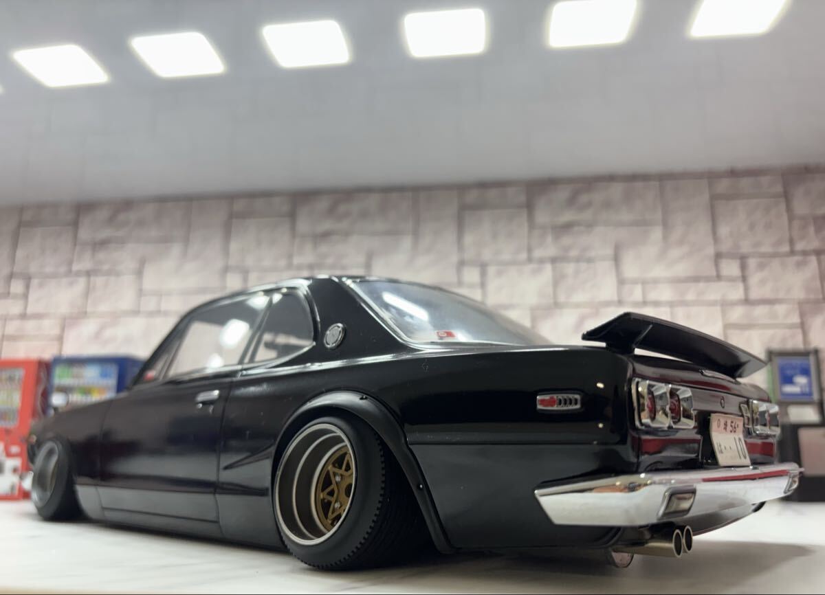 ホワイト車両を未販売のブラックに全塗装した希少な1/12サイズのハコスカGT-Rです。