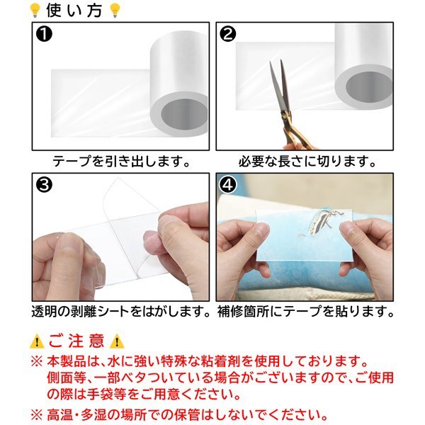 | ペタッと貼って水漏れ・空気漏れストップ! 防水性に優れた超強力補修テープ! \透明のお届けです。/ |