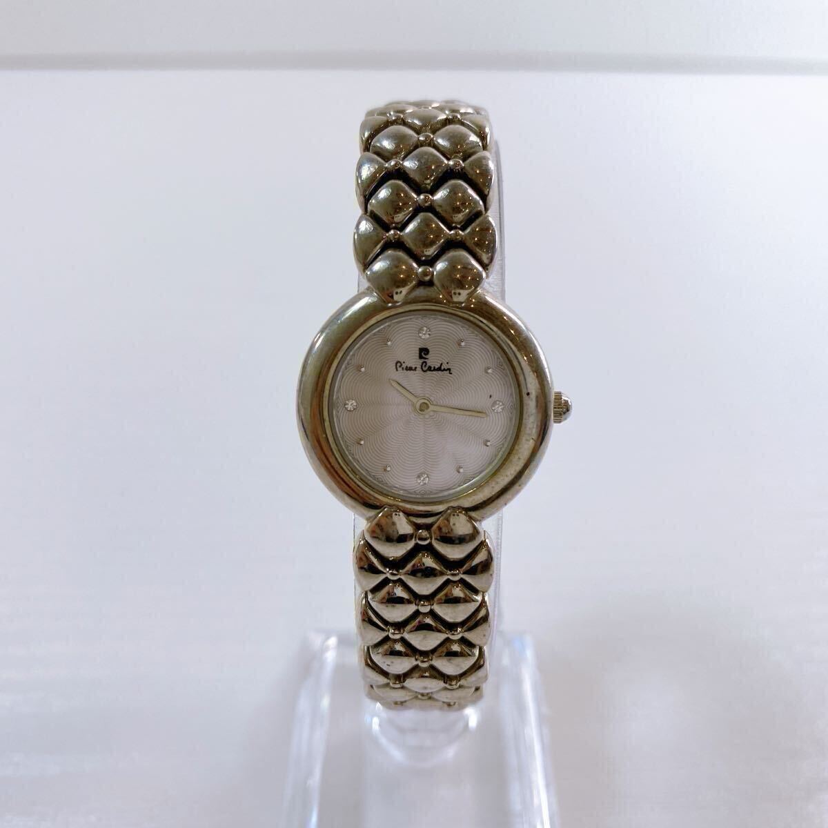 308【中古】pierre cardin ピエールカルダン レディース腕時計 クォーツ シルバー 文字盤ホワイト ラウンドフェイス 動作未確認 現状品