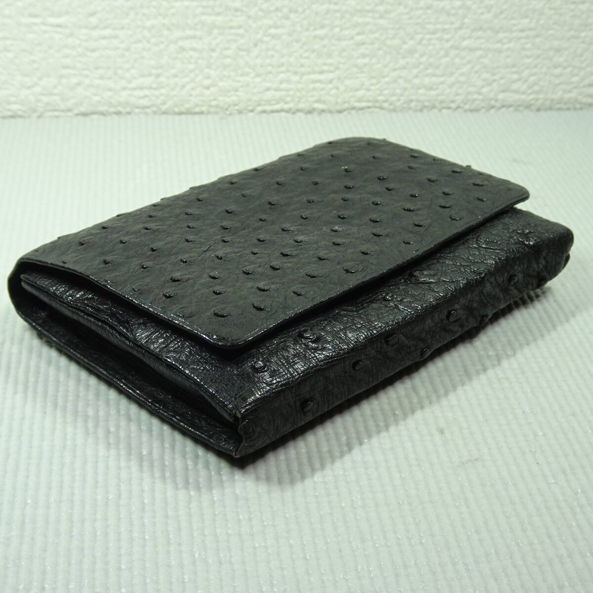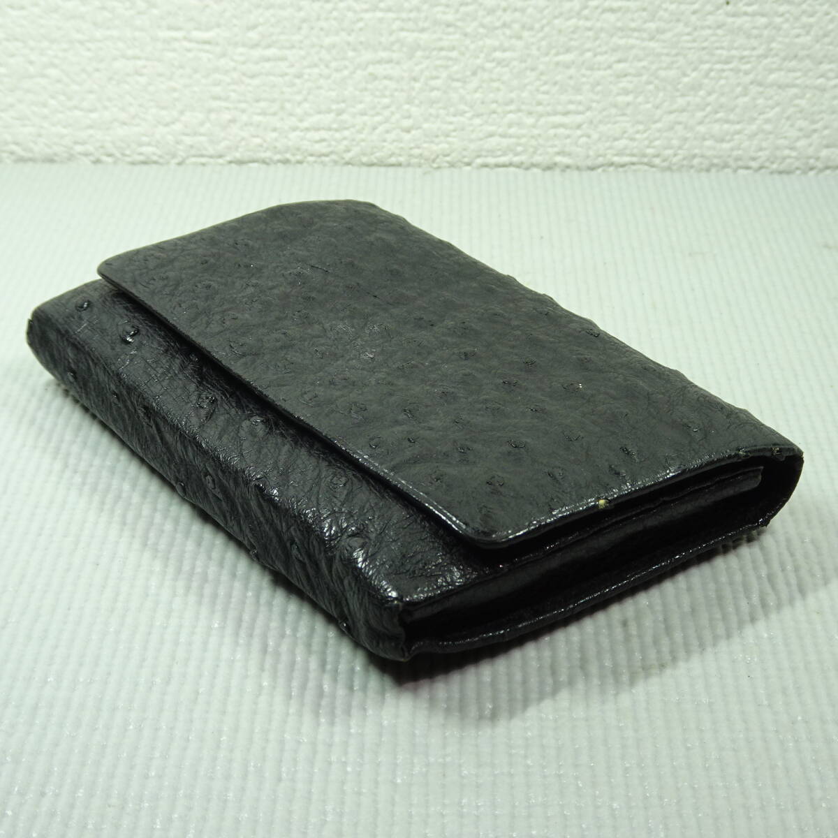 オーストリッチ風? ダチョウ 名刺入れ カードケース メーカー不明 ブラック 黒 型押し 送料:全国一律180円