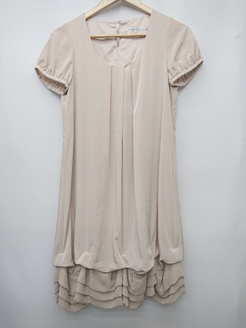 ◇ ⊂ The way of Chic Ray BEAMS ザ ウェイ オブ チック レイ 半袖 膝丈 ワンピース サイズ1 ベージュ レディース P