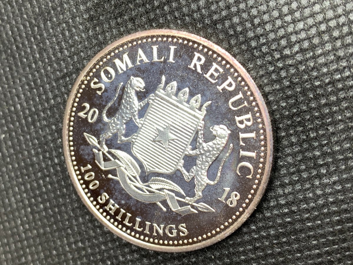 31.1グラム 2018年 (新品) ソマリア「アフリカ ワイルドライフ・ゾウ」純銀 1オンス 銀貨