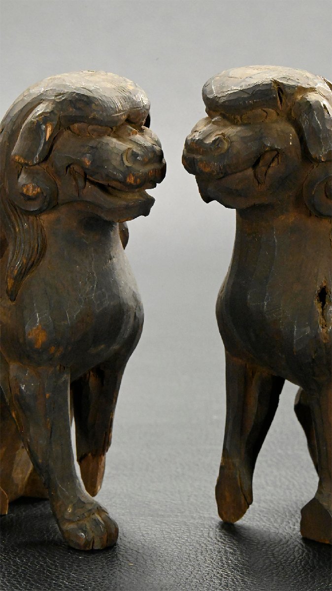 【永】d144【兵庫県の図書館や博物館の館長を歴任された歴史研究家遺族委託品】日本美術 室町~江戸時代 木造彩色狛犬一対  仏教美術