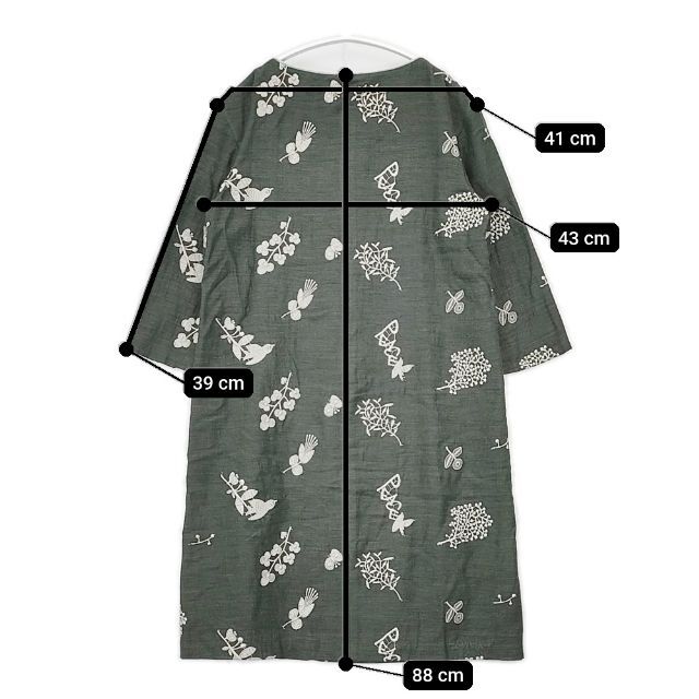 | 実寸サイズ | 肩幅:約41cm 着丈:約88cm 身幅:約43cm 袖丈:約39cm ※採寸画像がある商品はハンガーに吊るした状態での計測のため、平置きでの採寸とは差が生じる場合がございます。平置きでの実寸サイズをご希望の場合は、ご購入前に必ずご質問ください。 ※記載以外のサイズが合わないことを理由とした返品はできませんので、 記載部分以外で実寸サイズの気になる箇所があれば必ず購入前にご質問ください。 |