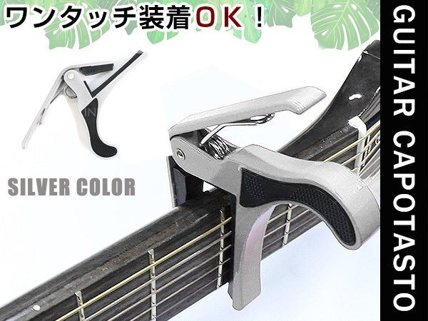 メール便 ギターカポ☆アコースティックギター フォークギター エレキギター 対応 バネ式クリップタイプ カポタスト カポ シルバー 銀
