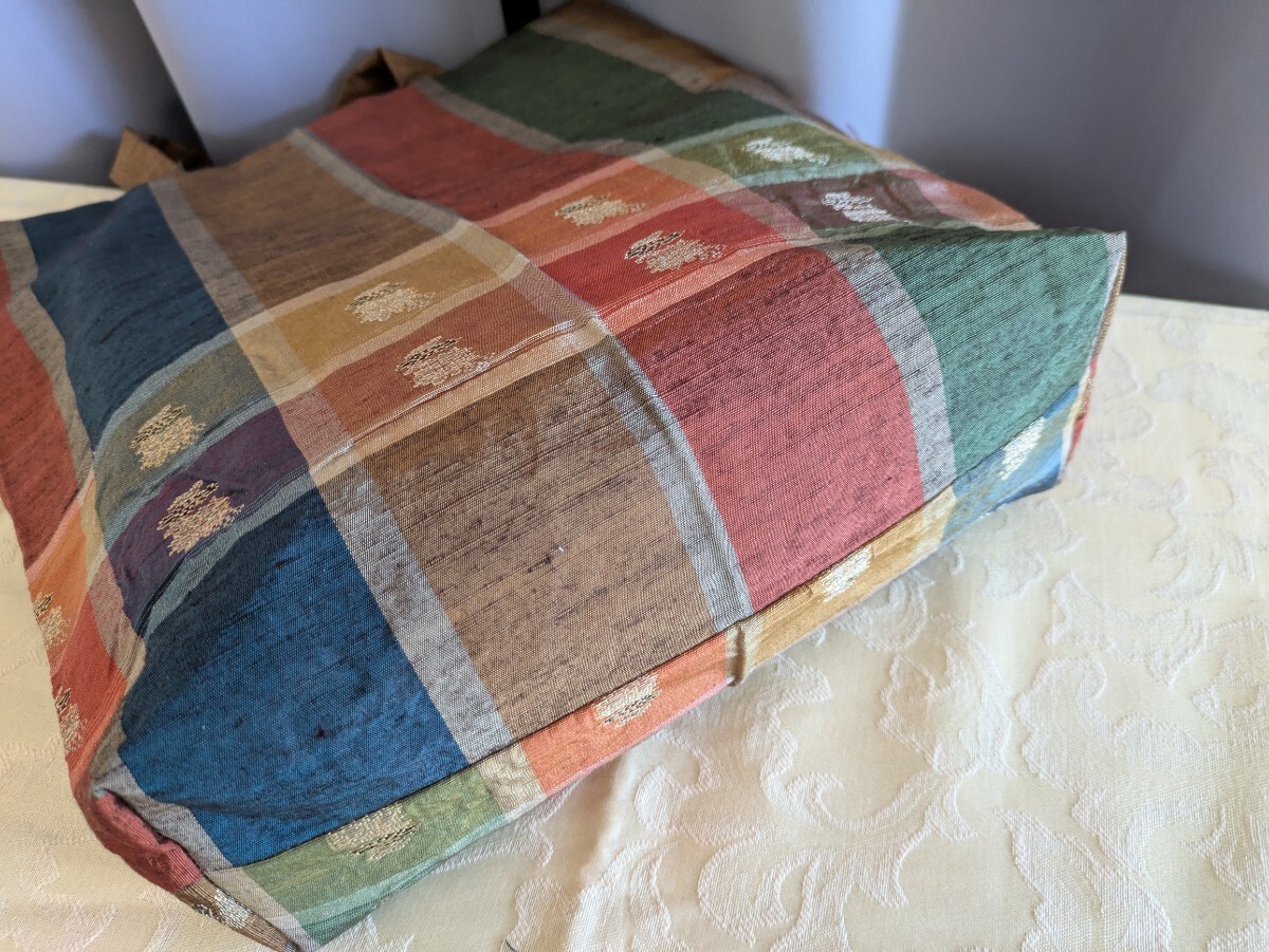 帯をリメイクして作成していますので着物特有の保存臭がする場合があります。ご理解の上入札をお願いいたします。