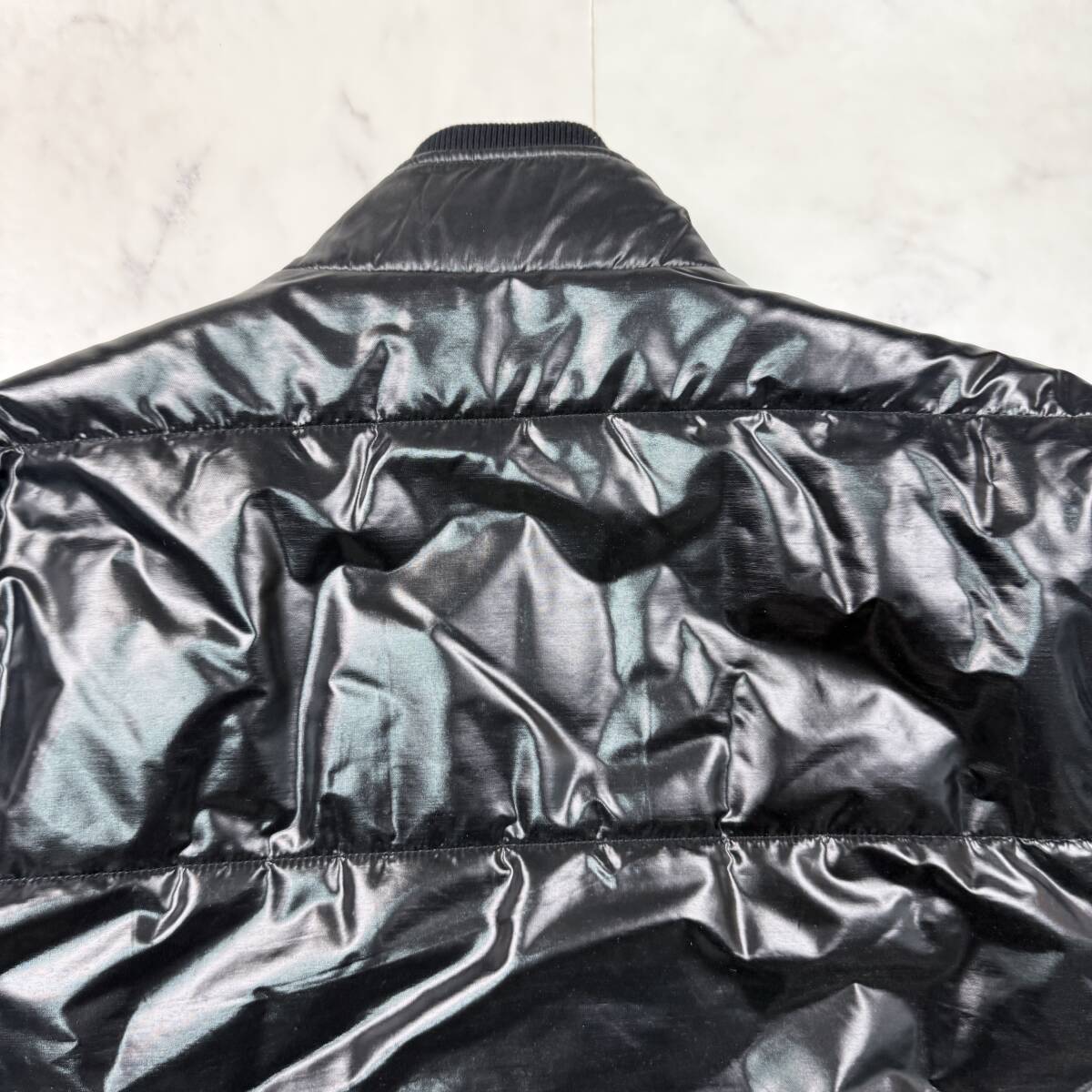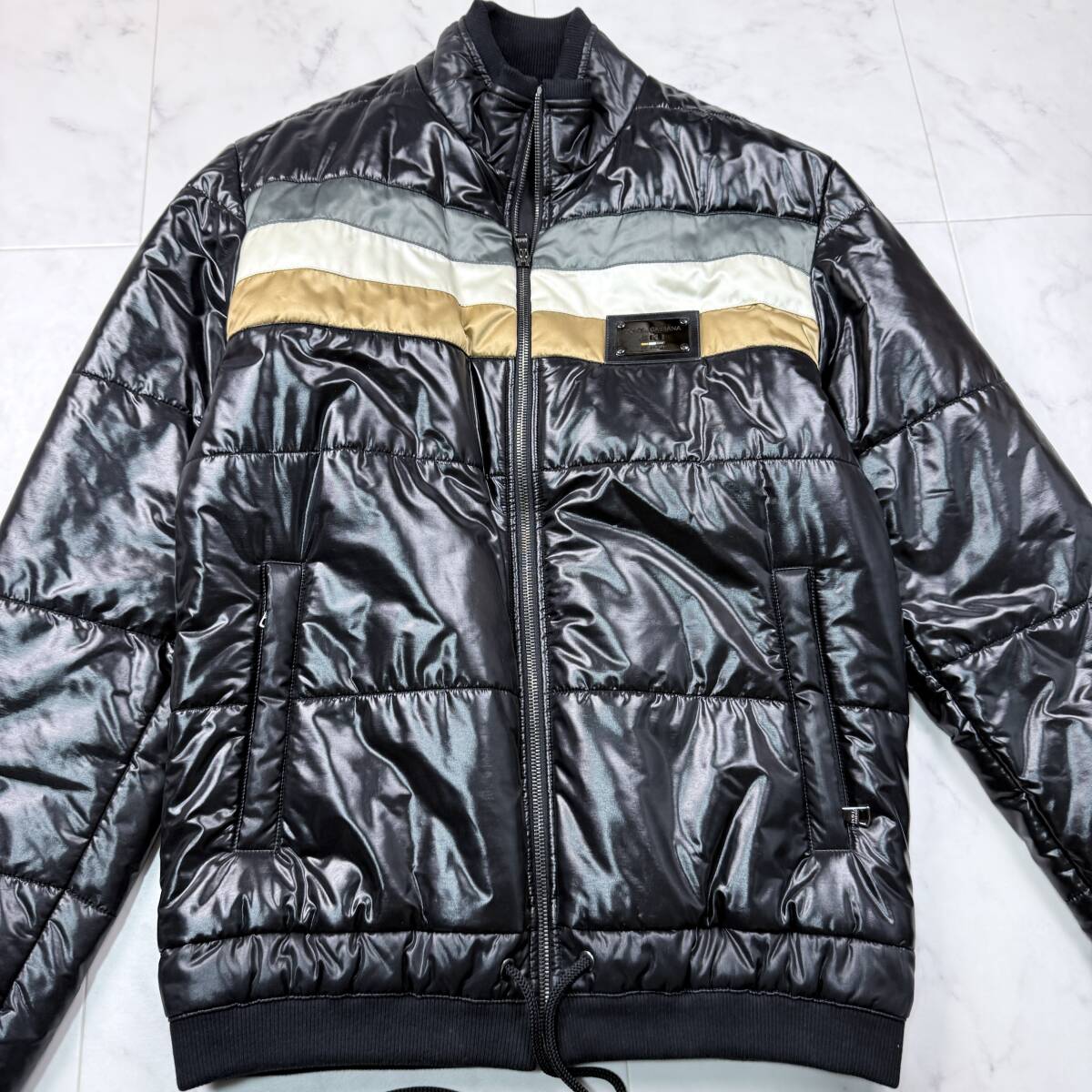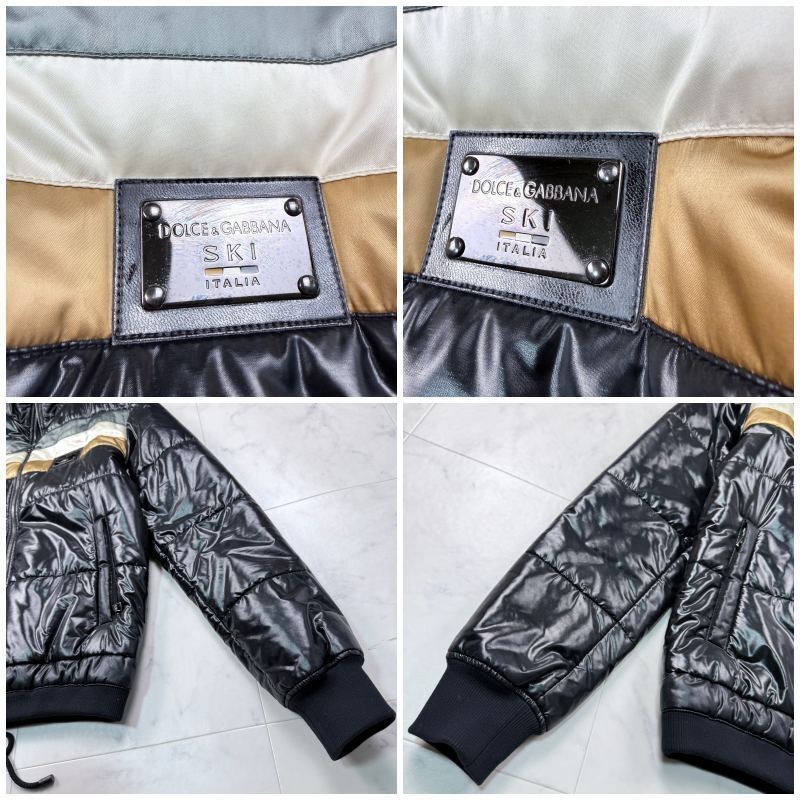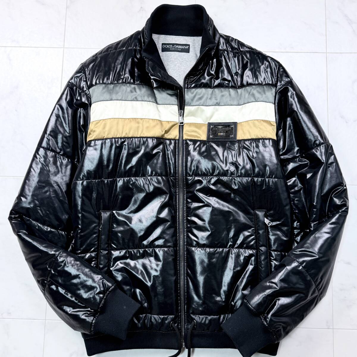 美品 L相当 DOLCE&GABBANA メタルプレート シャイニー ライダース ドルチェ&ガッバーナ ダウンジャケット レザー メンズ 46 ドルガバ D&G